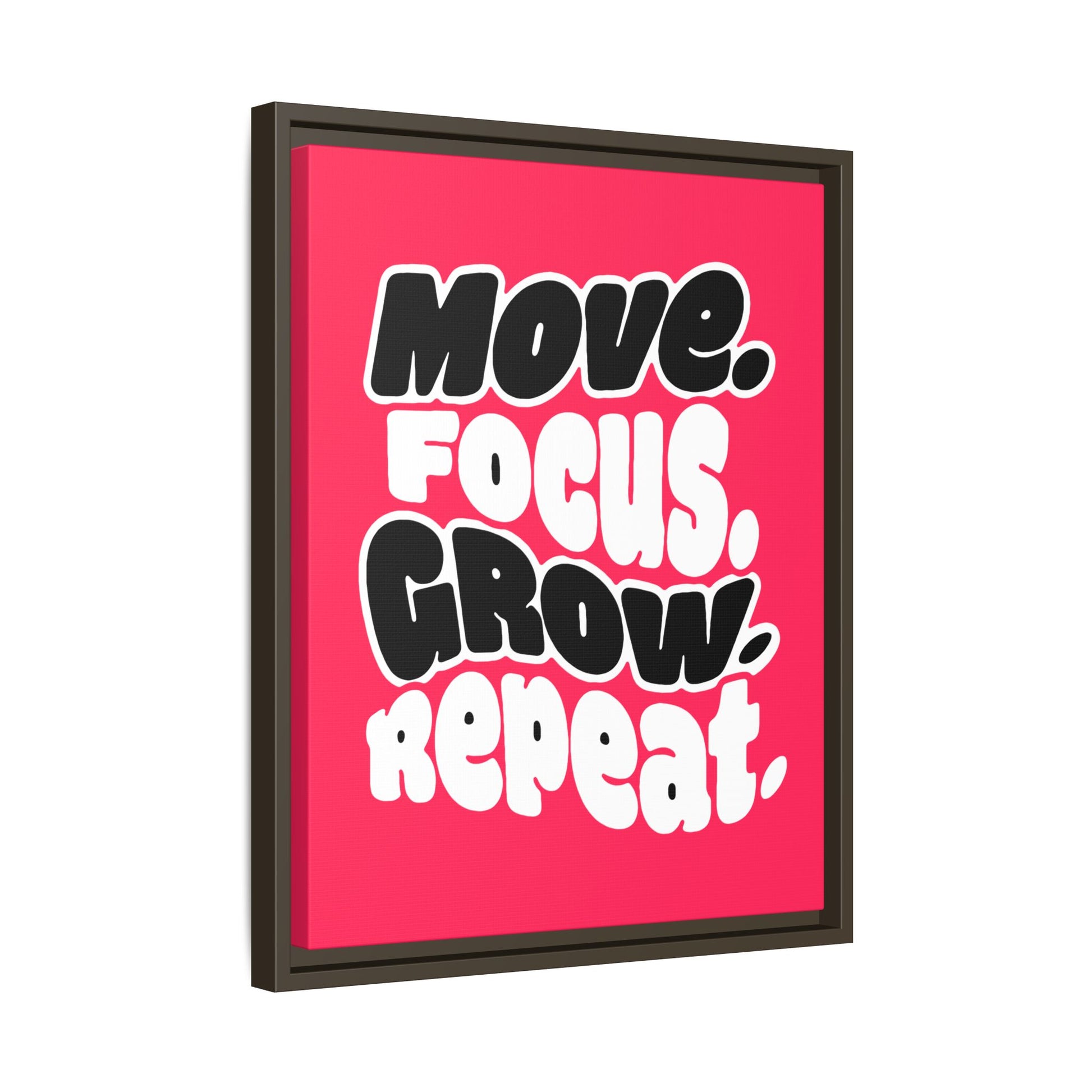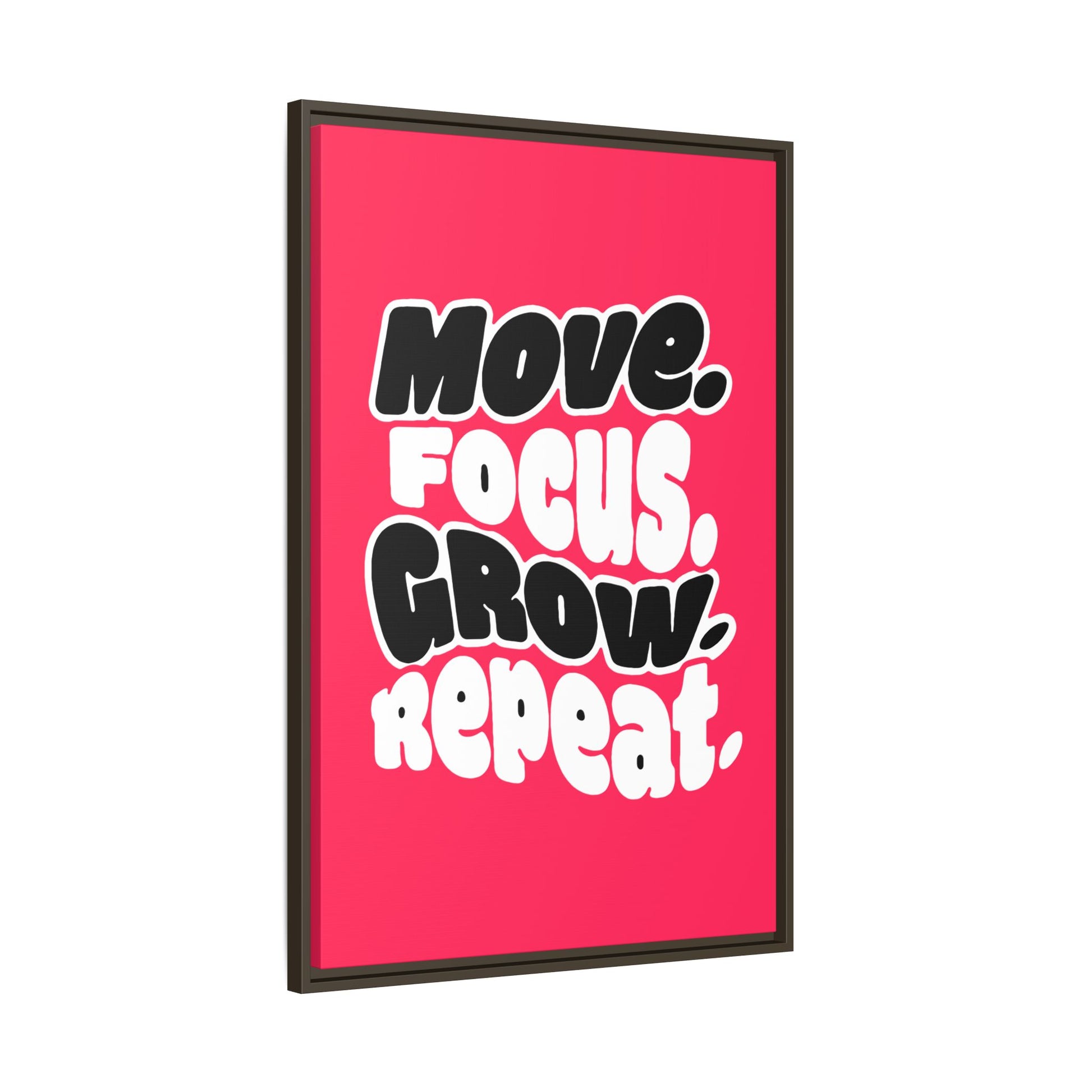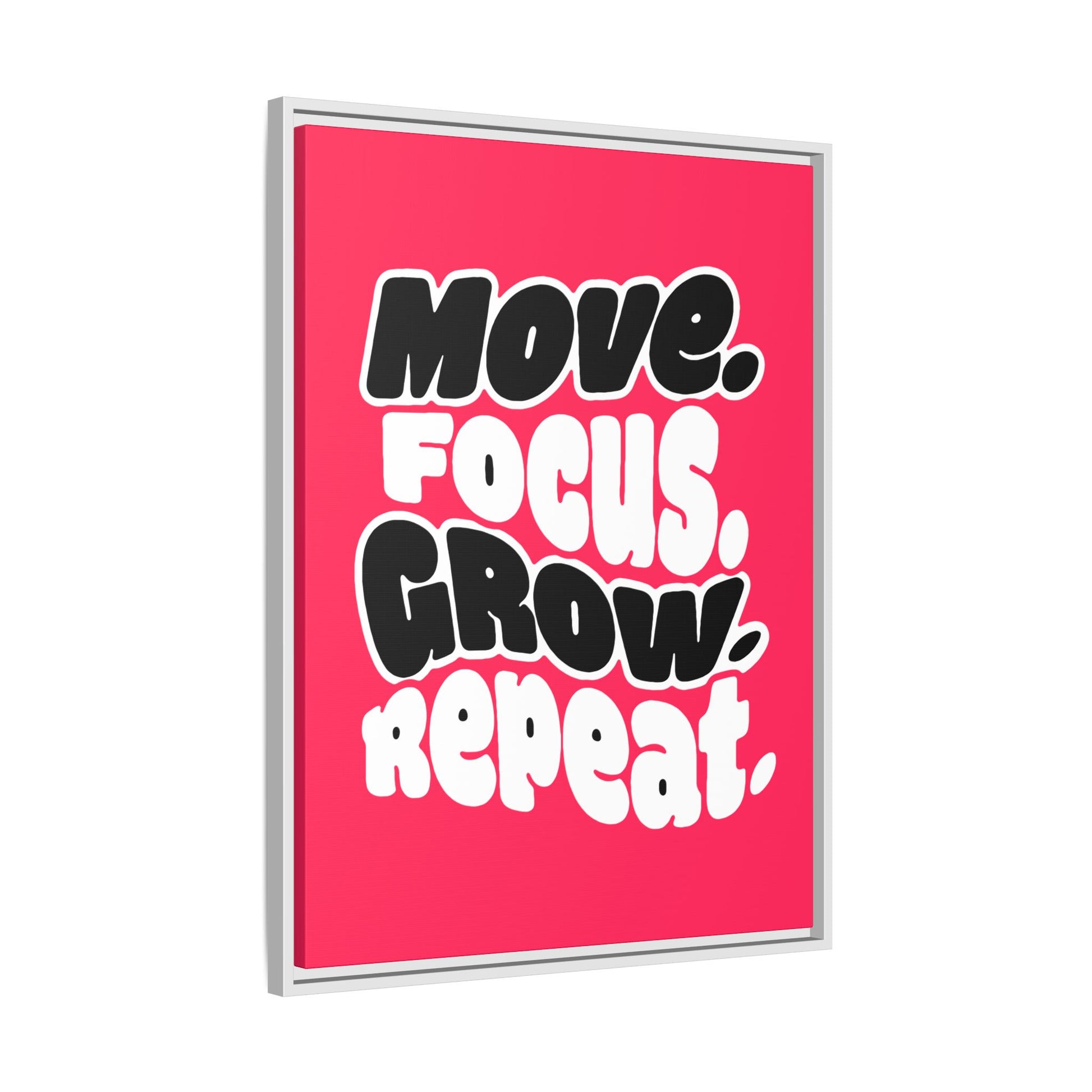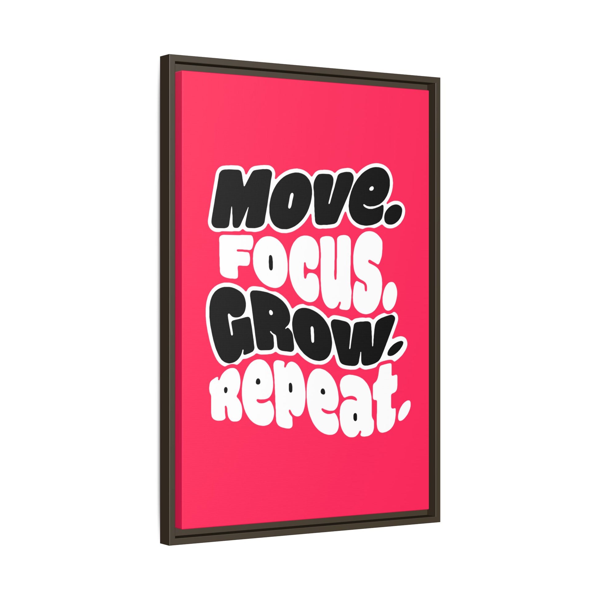 Bold, energetic wall art that brings motivational rhythm to a workspace, studio, or living room. This matte canvas print features chunky, retro-inspired lettering in high-contrast black and white against a vivid coral-pink background. Framed in a slim pine frame with a crisp black finish, the piece reads like a daily mantra—short, punchy, and impossible to ignore. It feels like the upbeat nudge you need before a workout, a morning planning session, or a creative sprint. Hang it where momentum matters: above a desk, near a home gym, or in a cozy reading nook. The textured matte surface keeps glare low while the vivid inks preserve the lively palette, so the message stays bright and clear day after day.