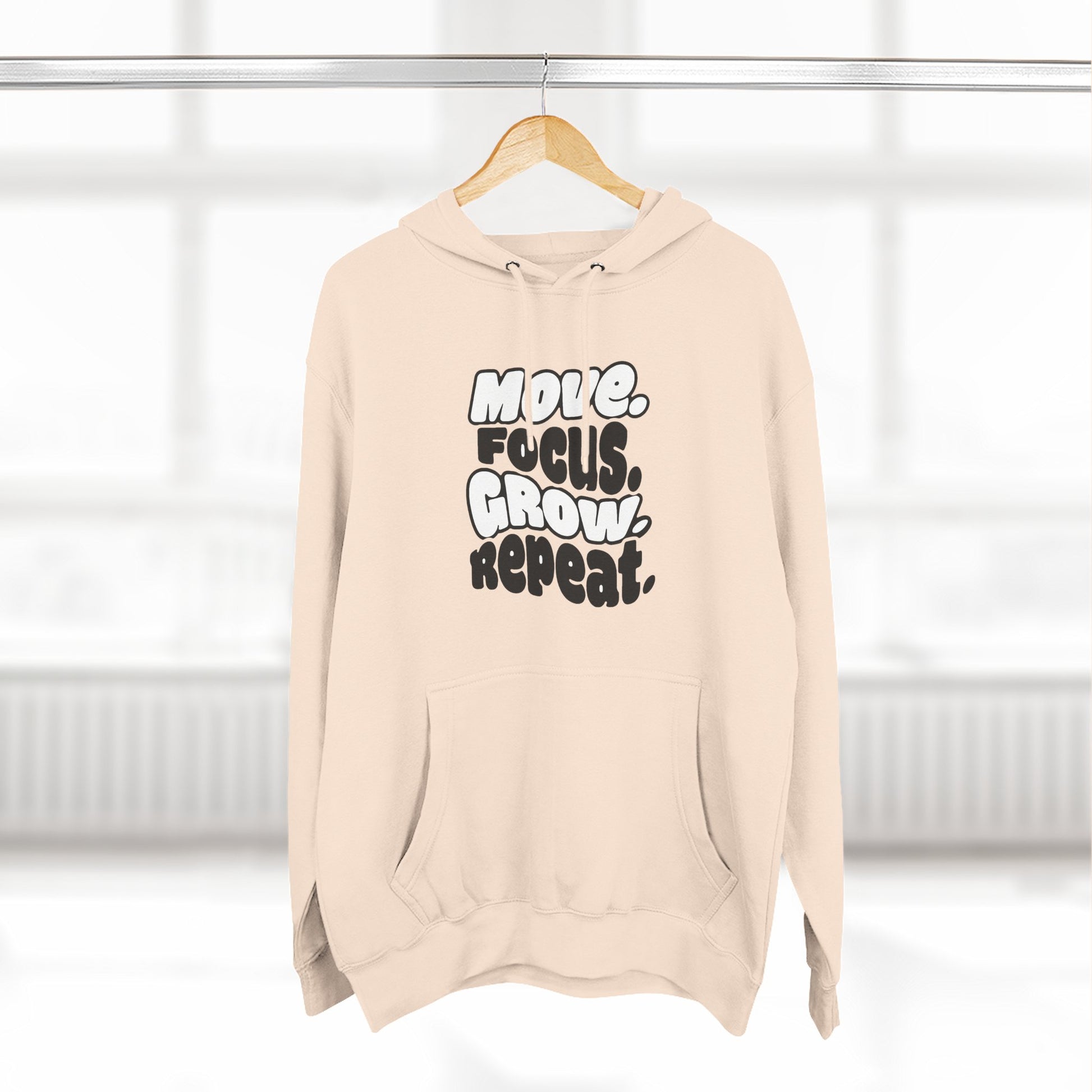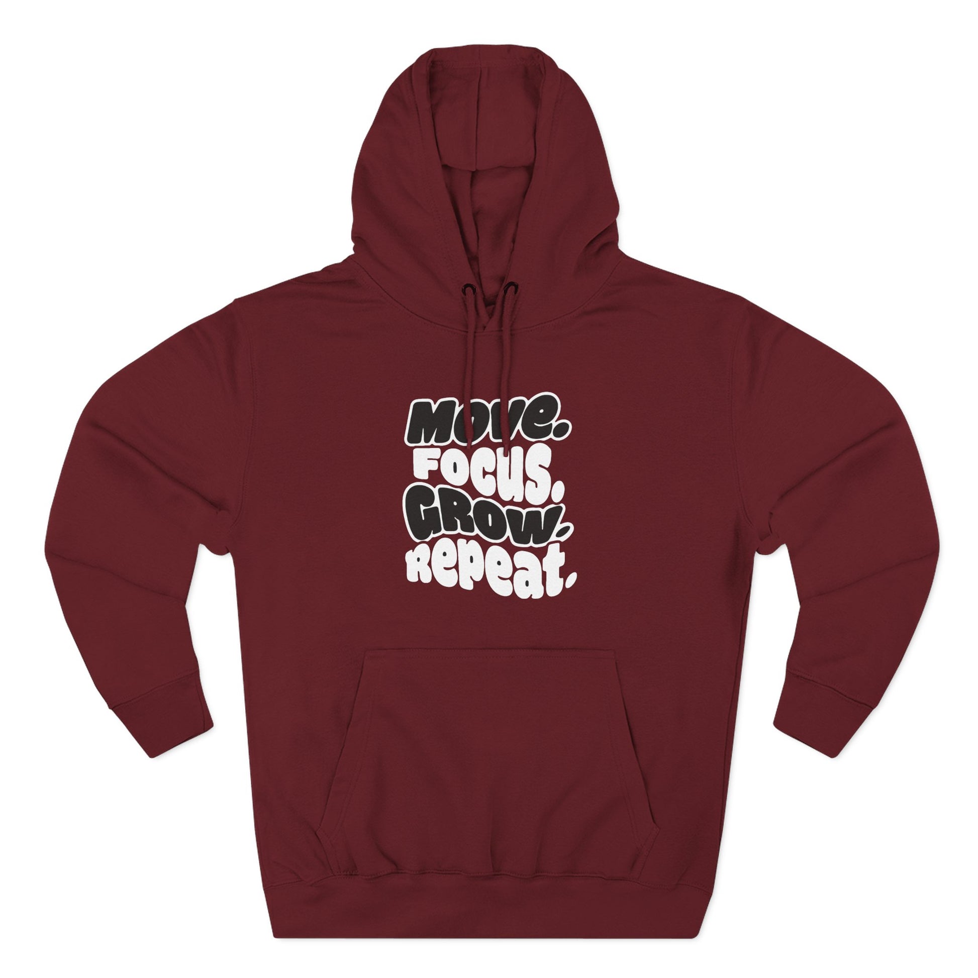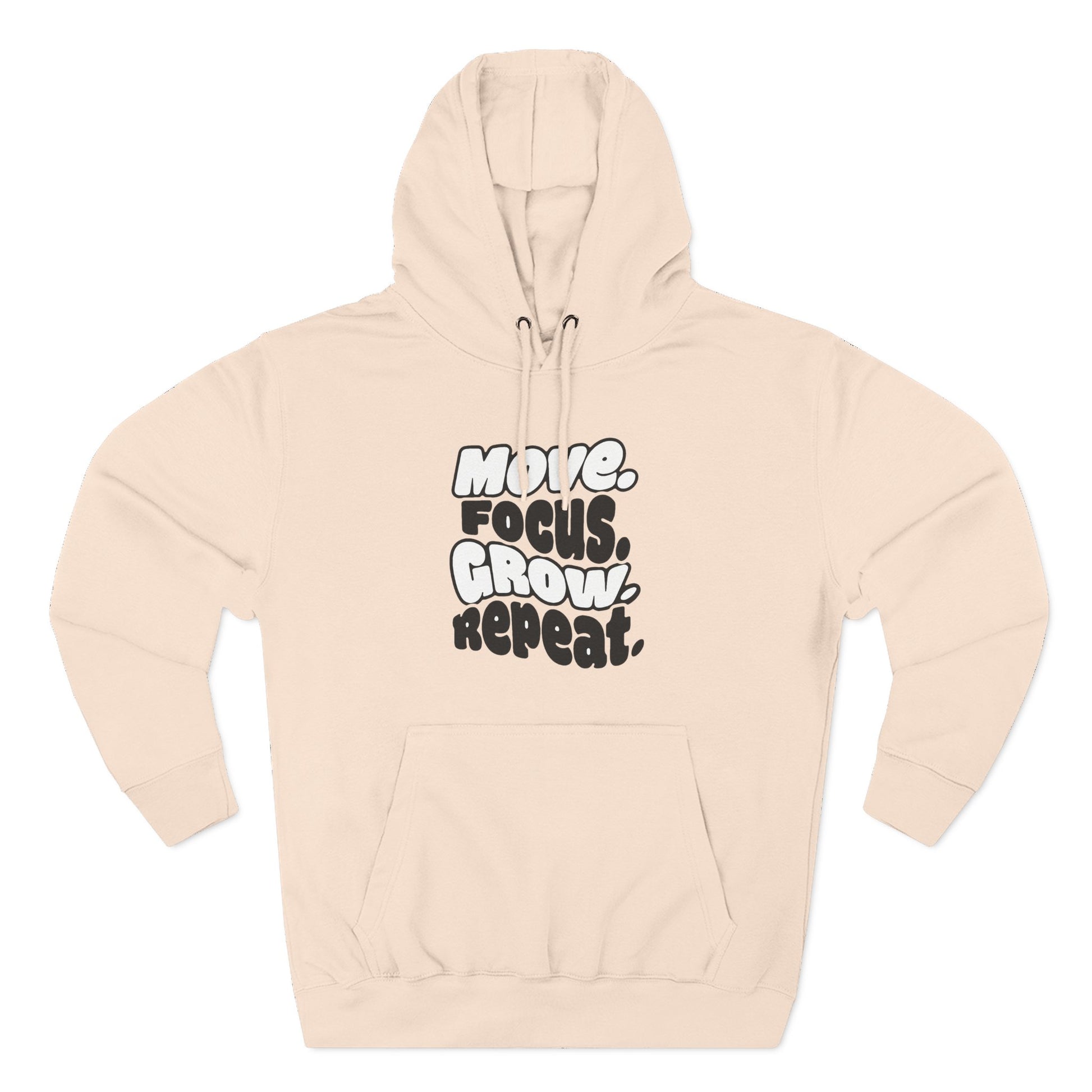 This cozy hoodie sits like a reliable companion for days when focus matters. The soft, medium-heavy fleece and roomy kangaroo pocket invite long walks, late-night study sessions, and quiet mornings at the desk. Subtle embroidered or printed lettering on the chest keeps the message low-key but motivating: a personal nudge to move, focus, grow, and repeat. The adjustable hood with metal-grommet drawcord and reinforced neck tape add durability, while the soft hand-feel and clean silhouette make it easy to layer under a jacket or lounge in at home. Built to keep shape with minimal shrinkage and finished with double-needle topstitching, this hoodie balances comfort and structure for everyday wear.