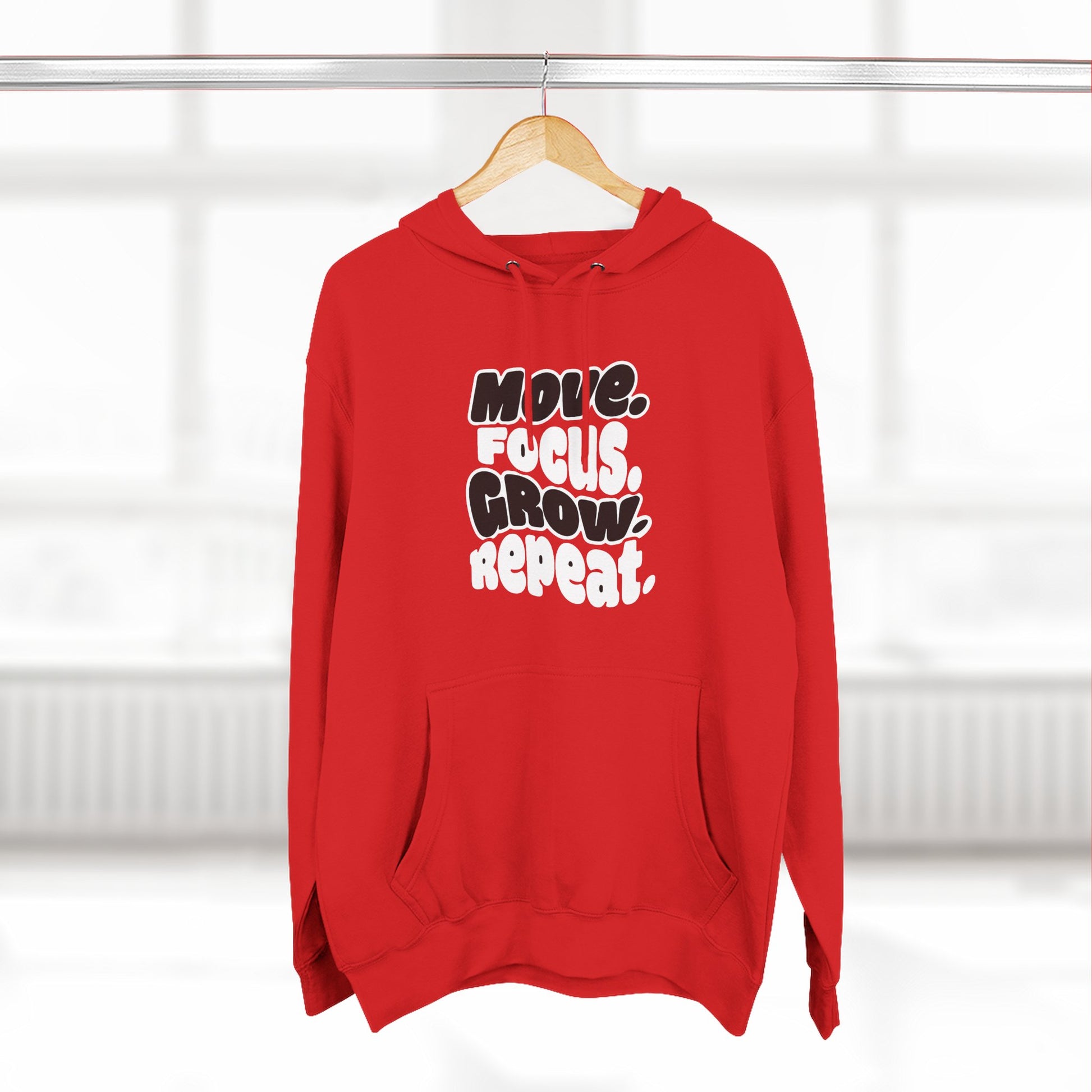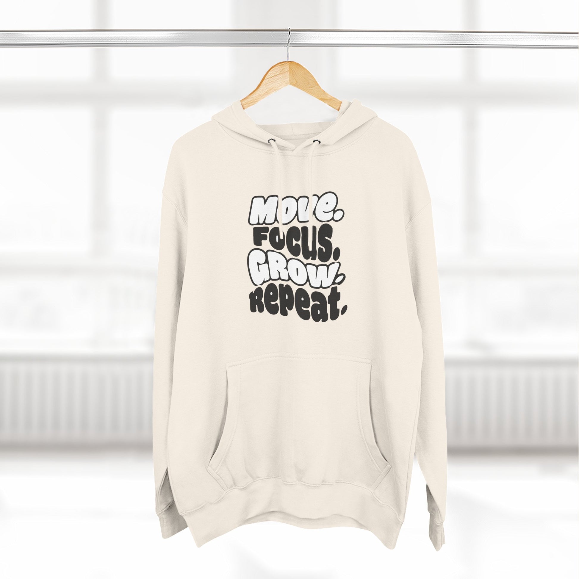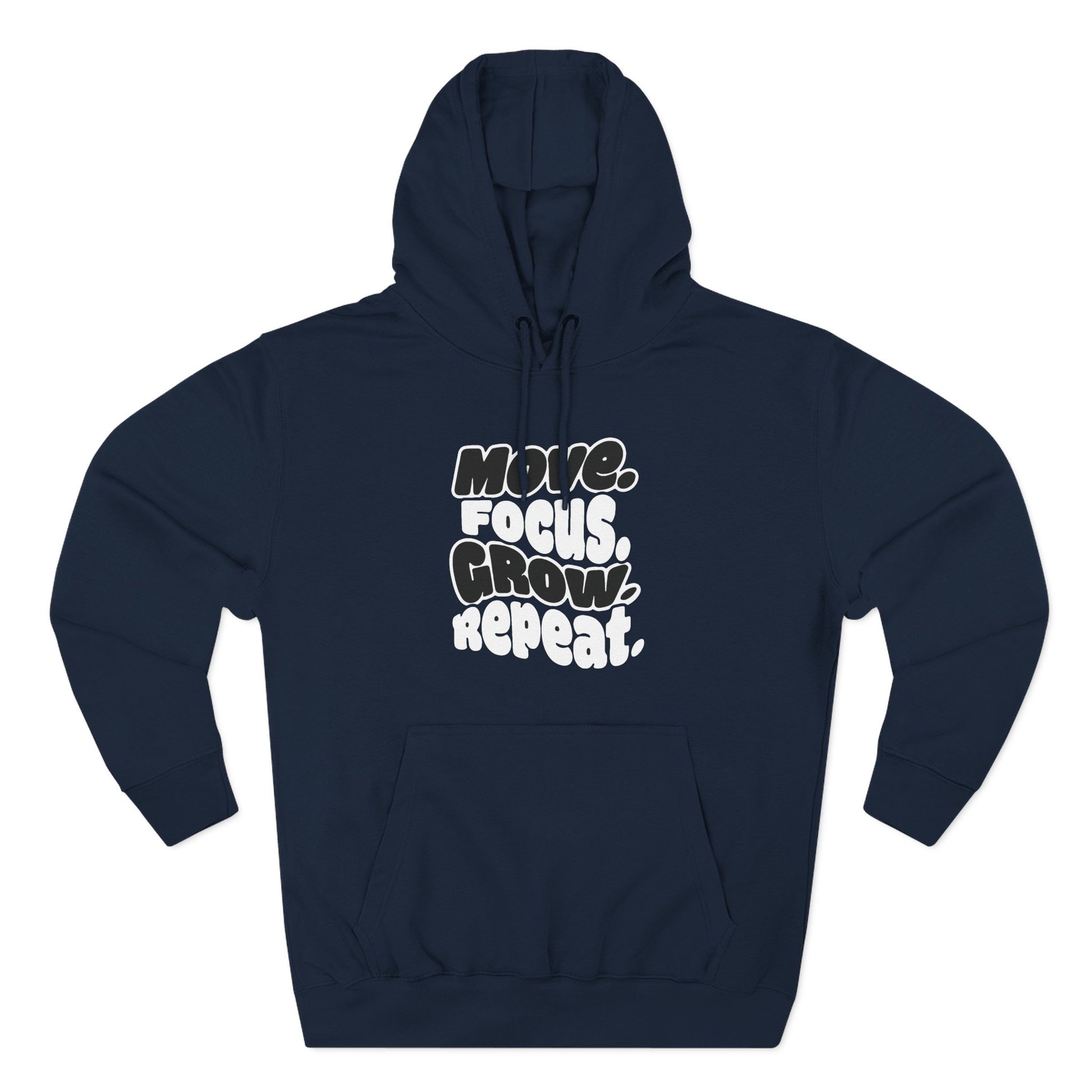 This cozy hoodie sits like a reliable companion for days when focus matters. The soft, medium-heavy fleece and roomy kangaroo pocket invite long walks, late-night study sessions, and quiet mornings at the desk. Subtle embroidered or printed lettering on the chest keeps the message low-key but motivating: a personal nudge to move, focus, grow, and repeat. The adjustable hood with metal-grommet drawcord and reinforced neck tape add durability, while the soft hand-feel and clean silhouette make it easy to layer under a jacket or lounge in at home. Built to keep shape with minimal shrinkage and finished with double-needle topstitching, this hoodie balances comfort and structure for everyday wear.