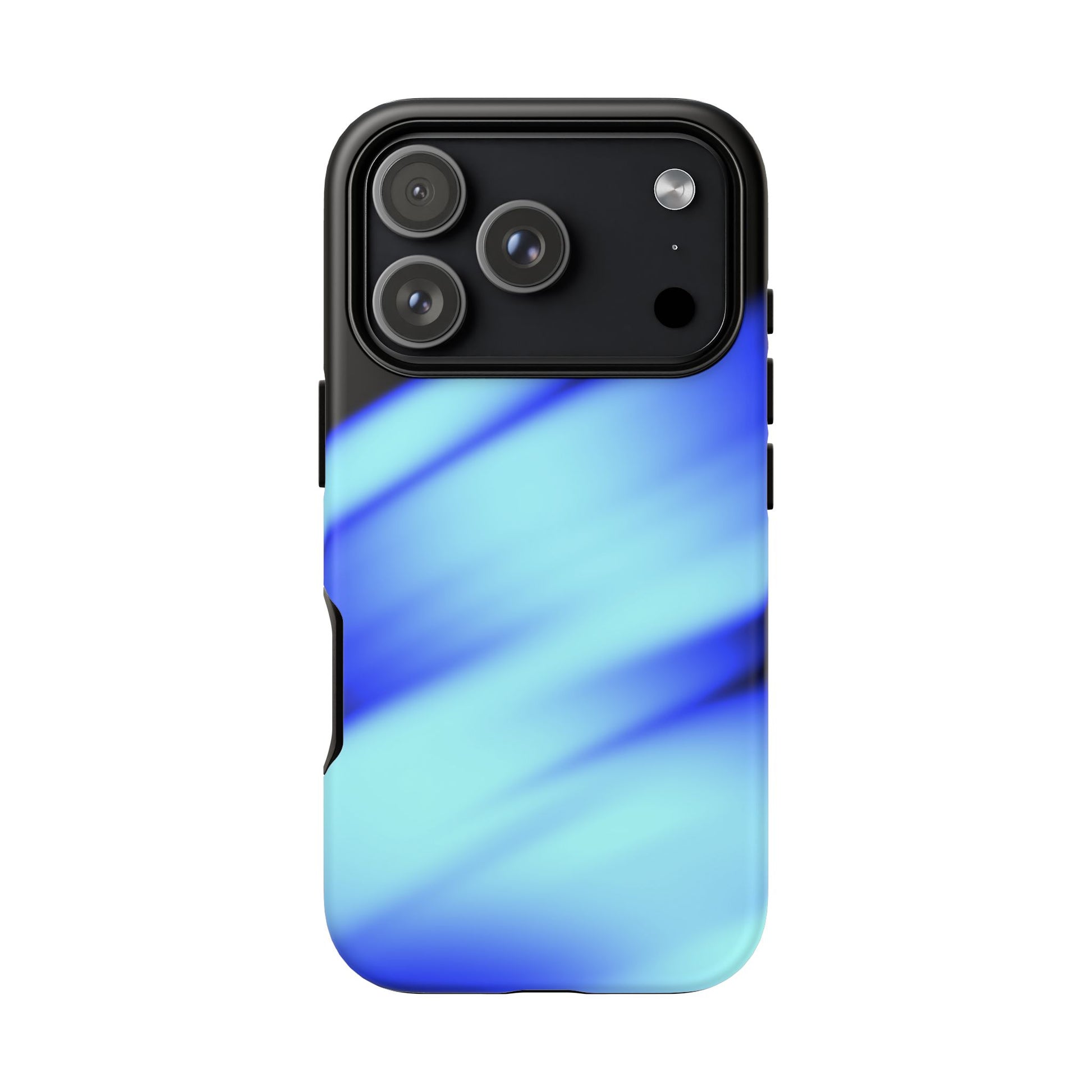 Sleek, protective phone case with a flowing blue gradient design that catches light and motion. The dual-layer construction pairs a hard polycarbonate shell with a soft TPU silicone liner for reliable shock absorption and drop protection. A full 3D wrap print gives the image edge-to-edge vibrancy, while UV protection helps maintain color outdoors. Clear port access preserves connectivity and the case supports wireless charging. Subtle, modern, and built to travel with you—this case feels like a small piece of polished glass in your hand, calming and dynamic at once.