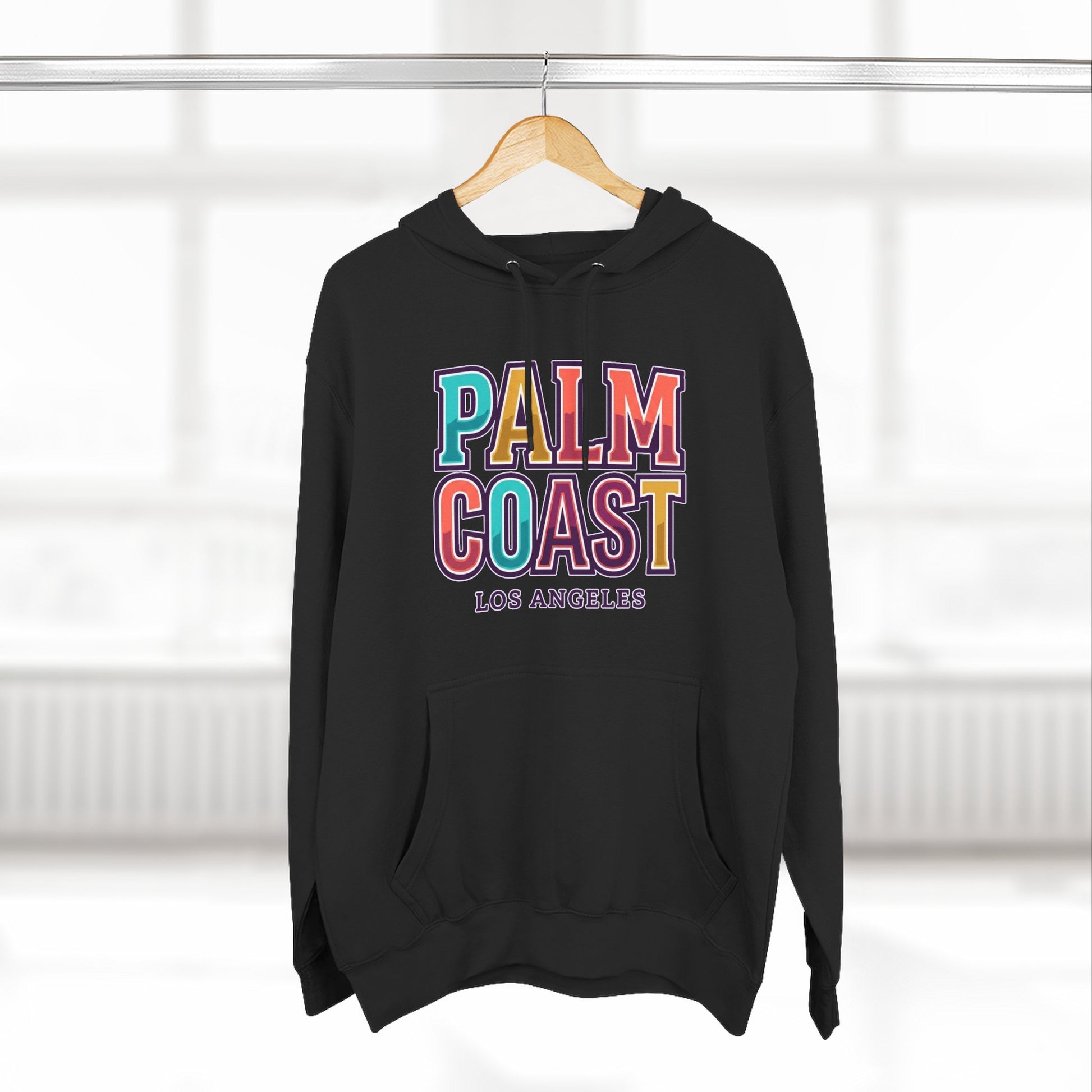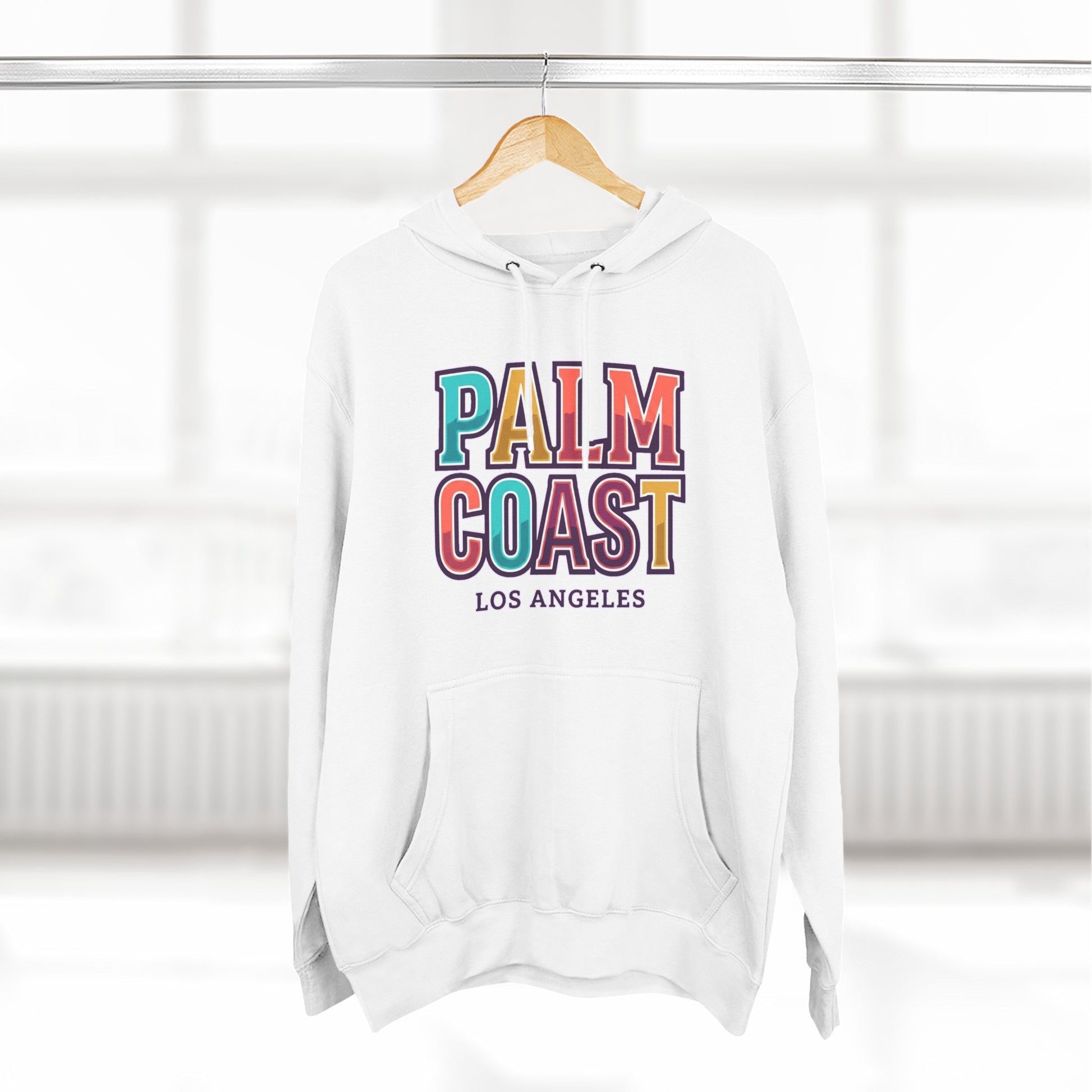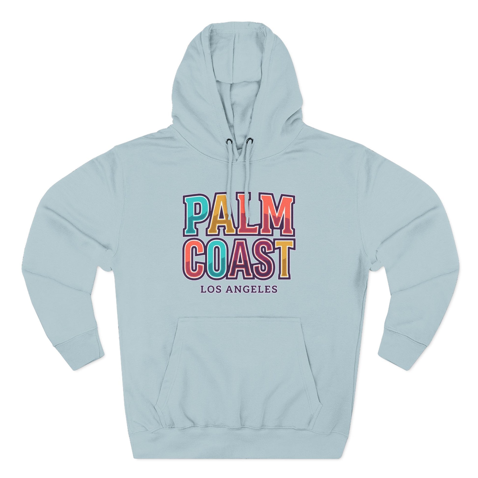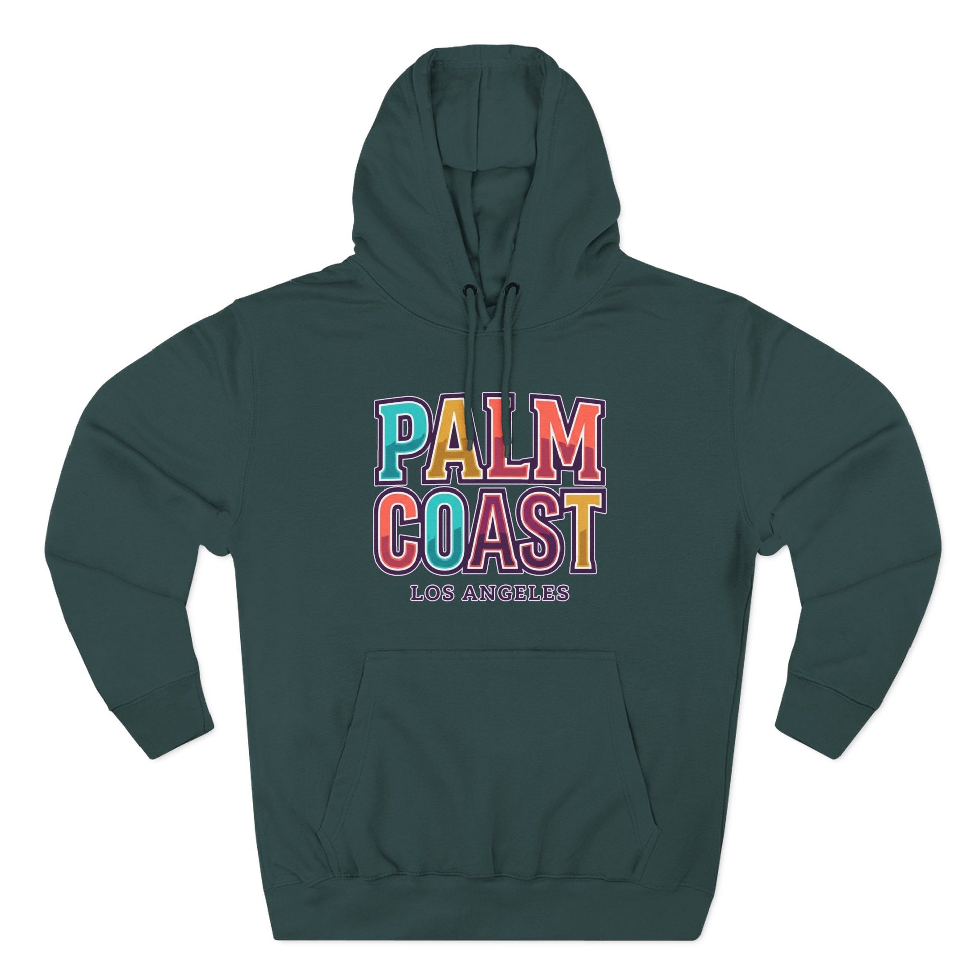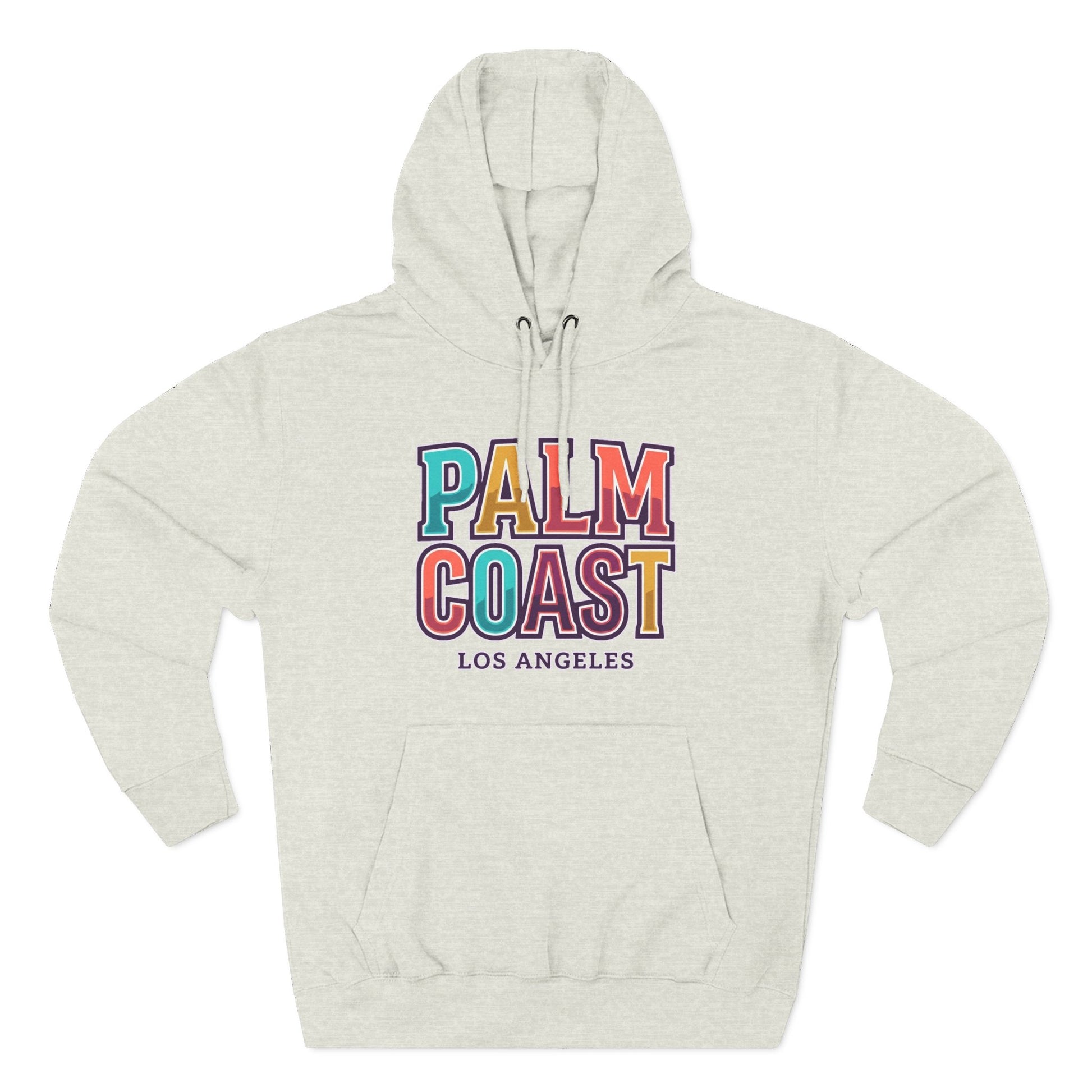 Light, cozy, and quietly bold — this hoodie feels like a sunrise walk along a palm-lined boardwalk. The medium-heavy fleece wraps you in warmth while the roomy kangaroo pocket keeps your hands tucked in on breezy mornings. Vintage-inspired, sun-washed lettering reads “PALM COAST” with a subtle “Los Angeles” subtitle, giving a laid-back West Coast vibe that slips easily into everyday life. The adjustable hood and soft hand-feel invite you to pull it on for coffee runs, late-night drives, or relaxed studio sessions. Built with reinforced seams and low-shrink fleece, it keeps its shape and color through repeat wear, while optional chest embroidery adds a refined, personal touch.