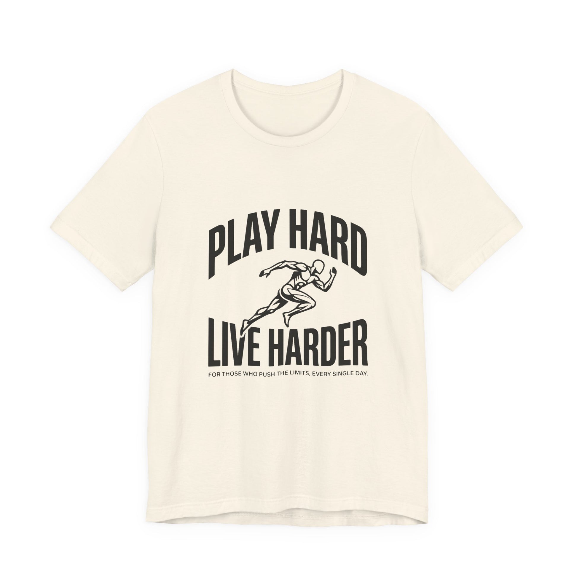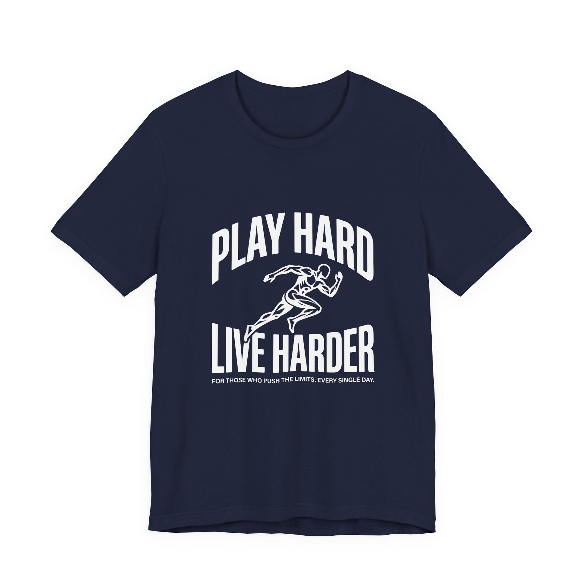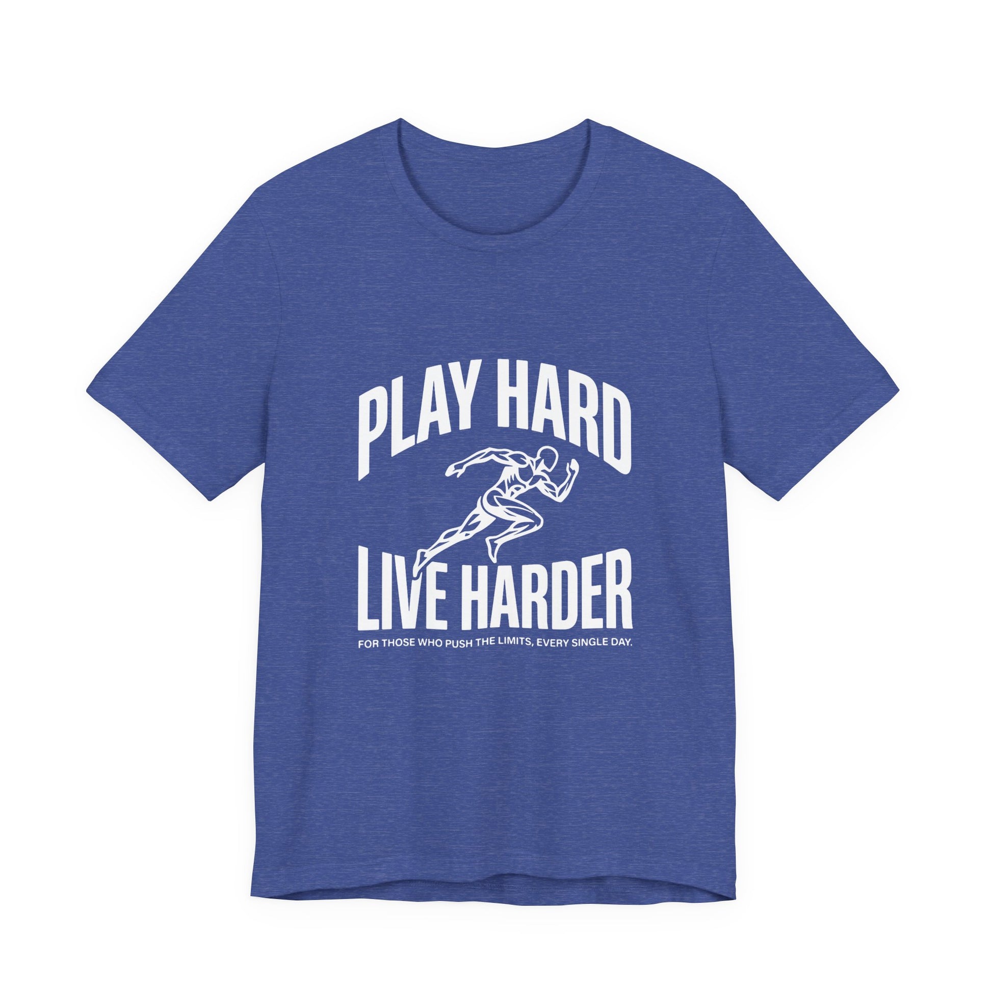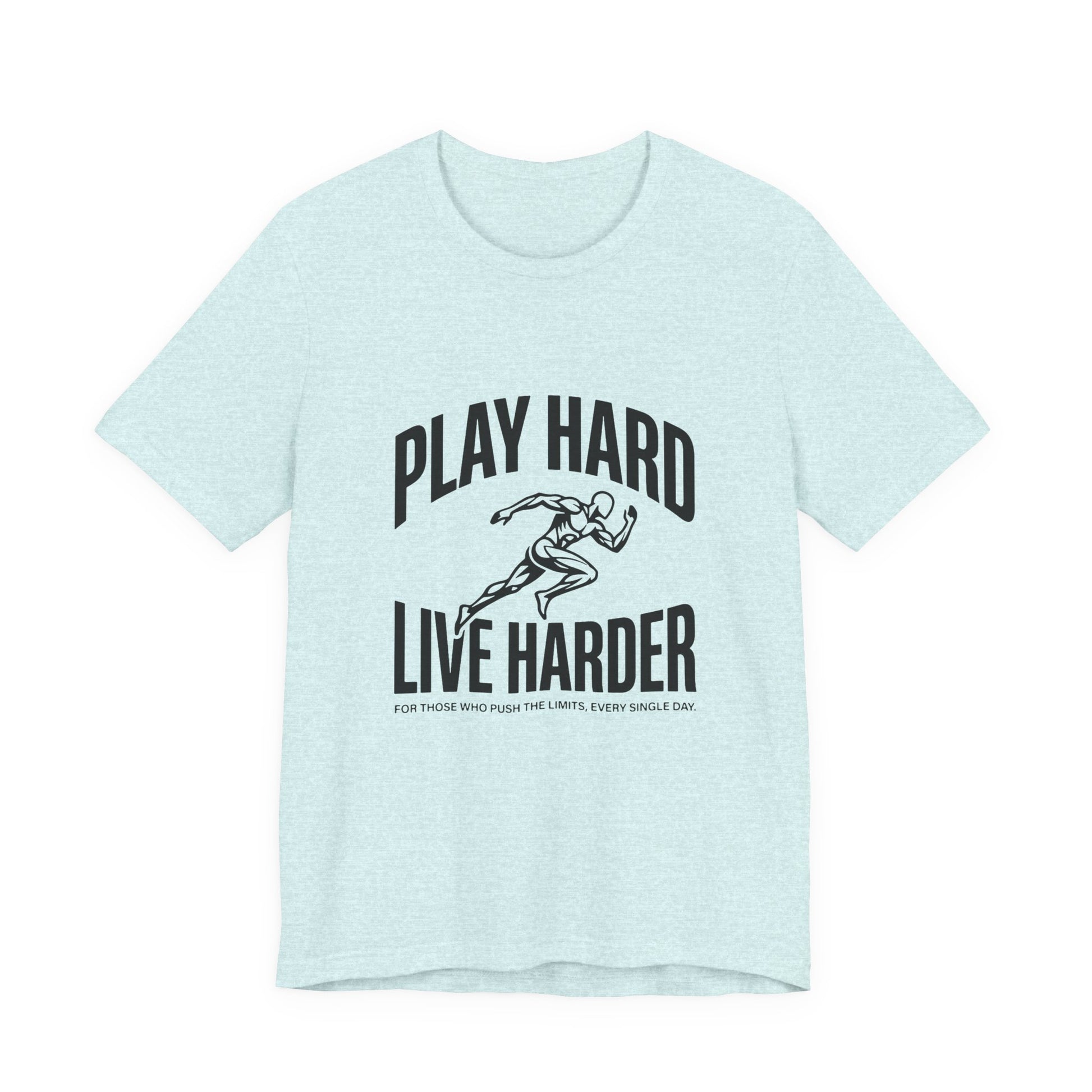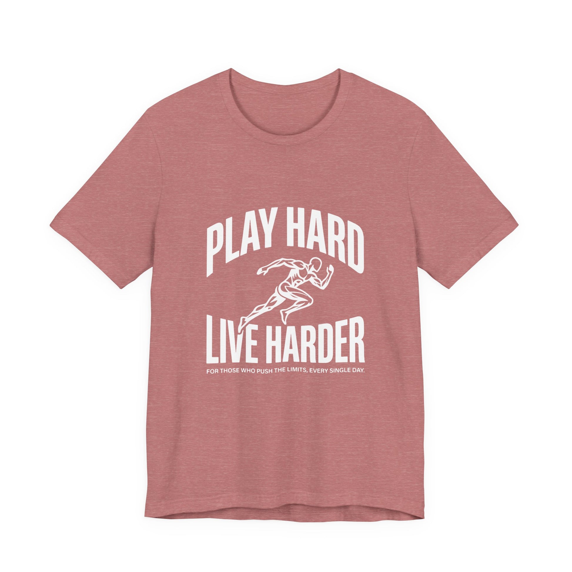 This lightweight Bella Canvas tee brings movement and attitude to everyday wear. The bold “Play Hard, Live Harder” art centers a vintage-style sprinter in motion — a quiet anthem for people who chase personal bests, early-morning runs, pickup games, and long weekends of deliberate living. The breathable Airlume combed ring-spun cotton drapes cleanly, while side seams and a ribbed knit collar keep the shape through repeat wears. Tear-away labeling and humane manufacturing give this shirt a thoughtful, wearable feel. Wear it to warm up, stretch out, or just meet friends for coffee after a sunrise run — it sits neatly under a hoodie or shows off on its own.