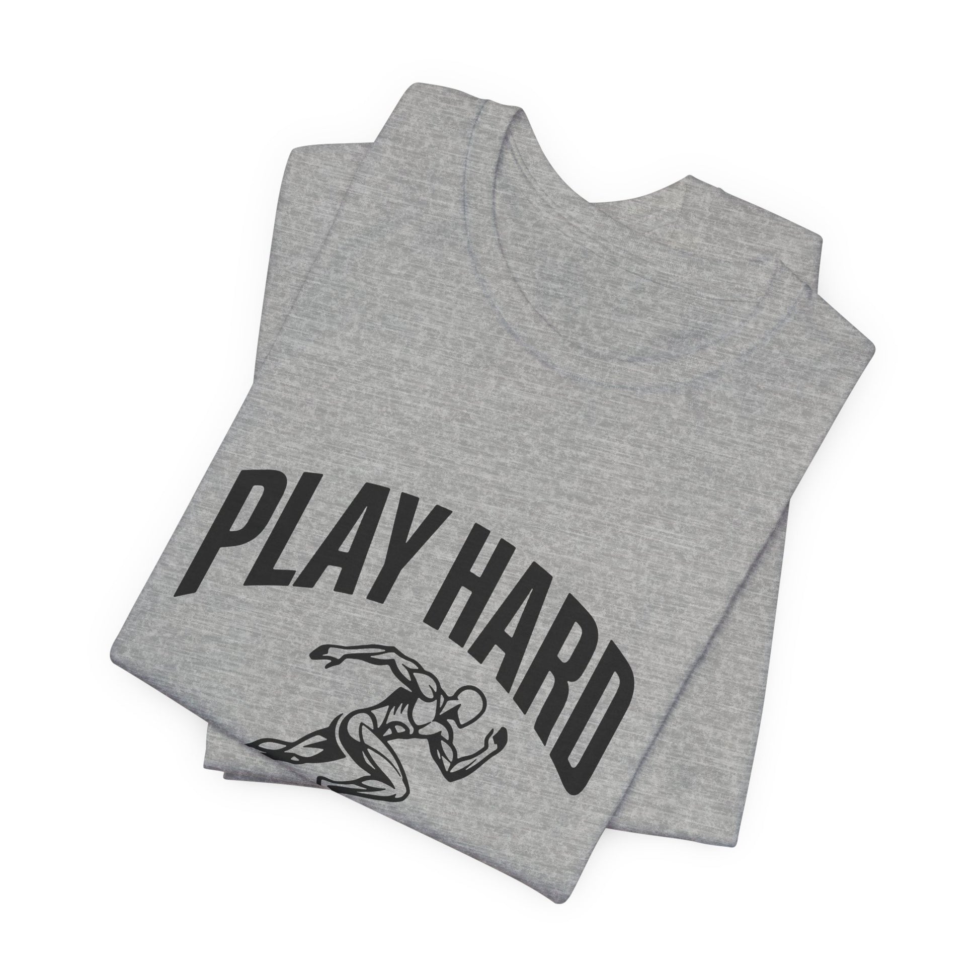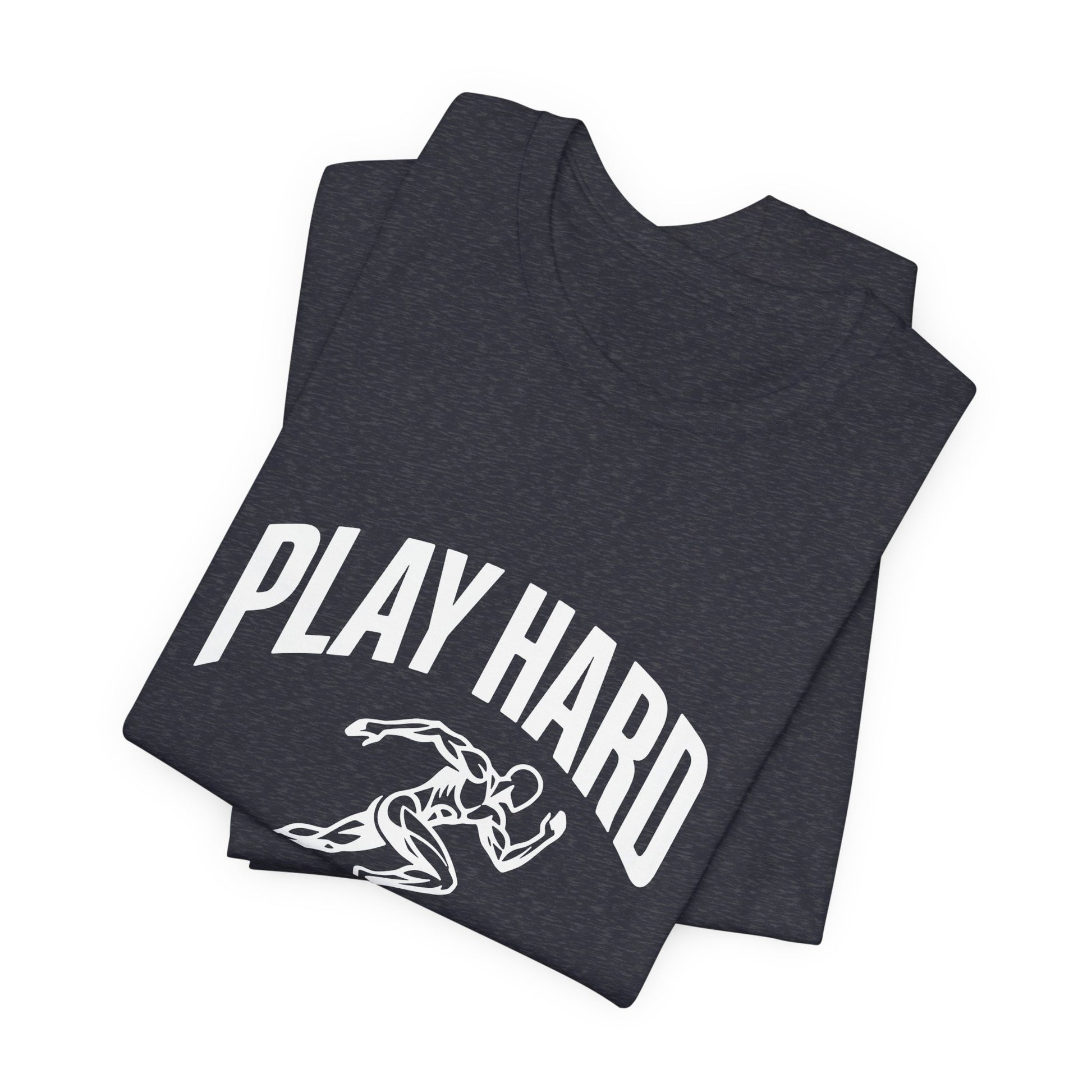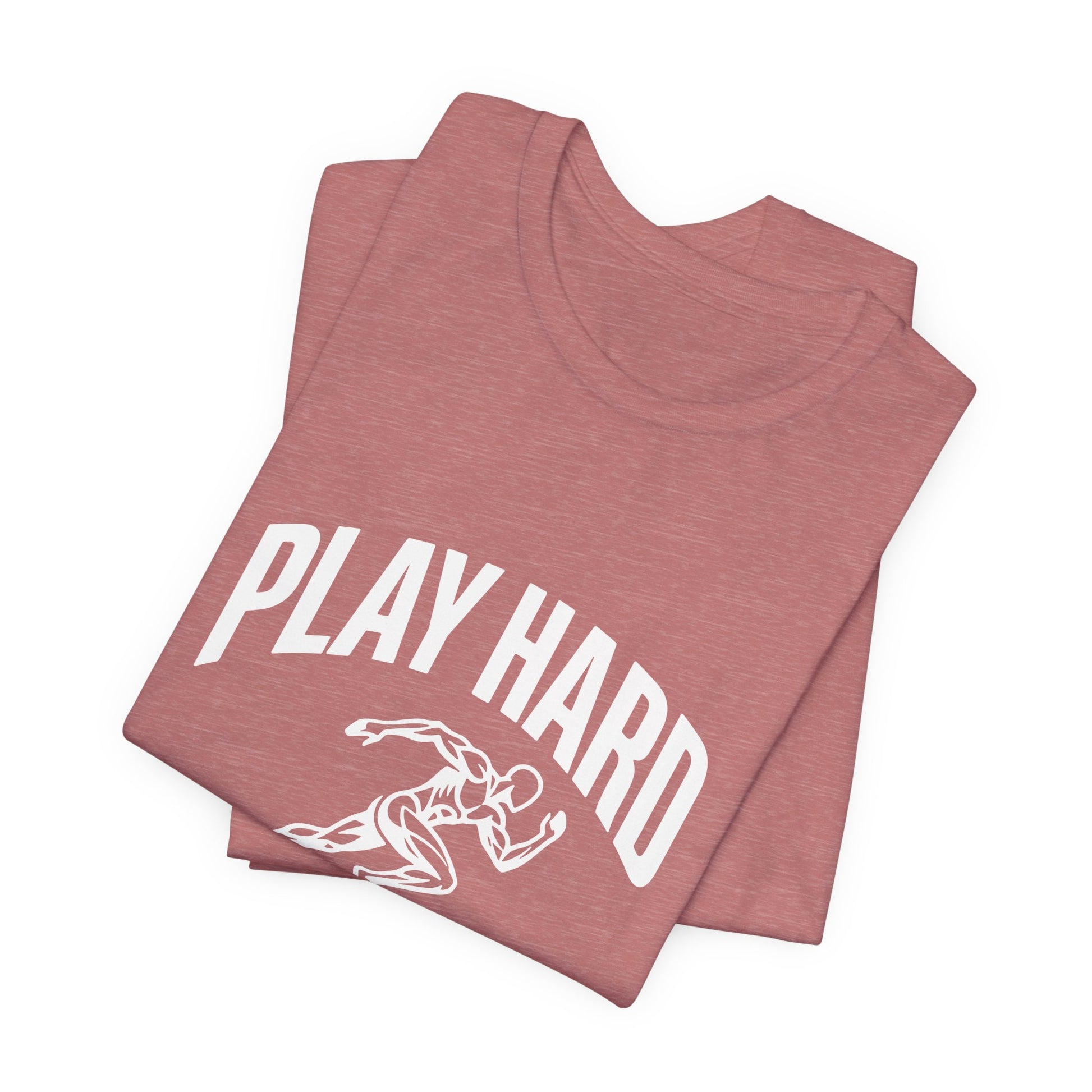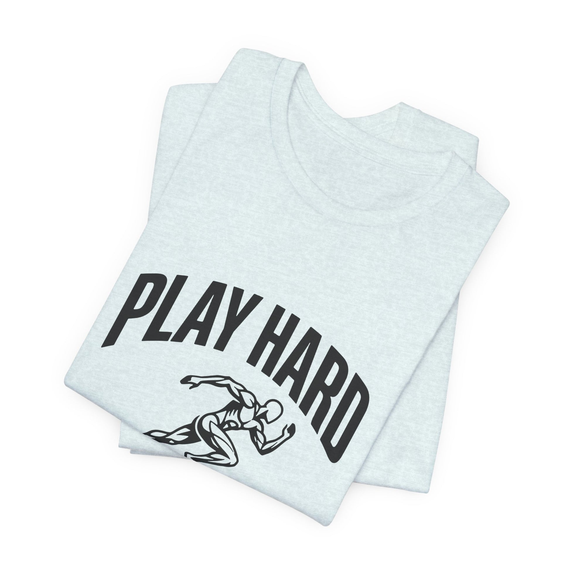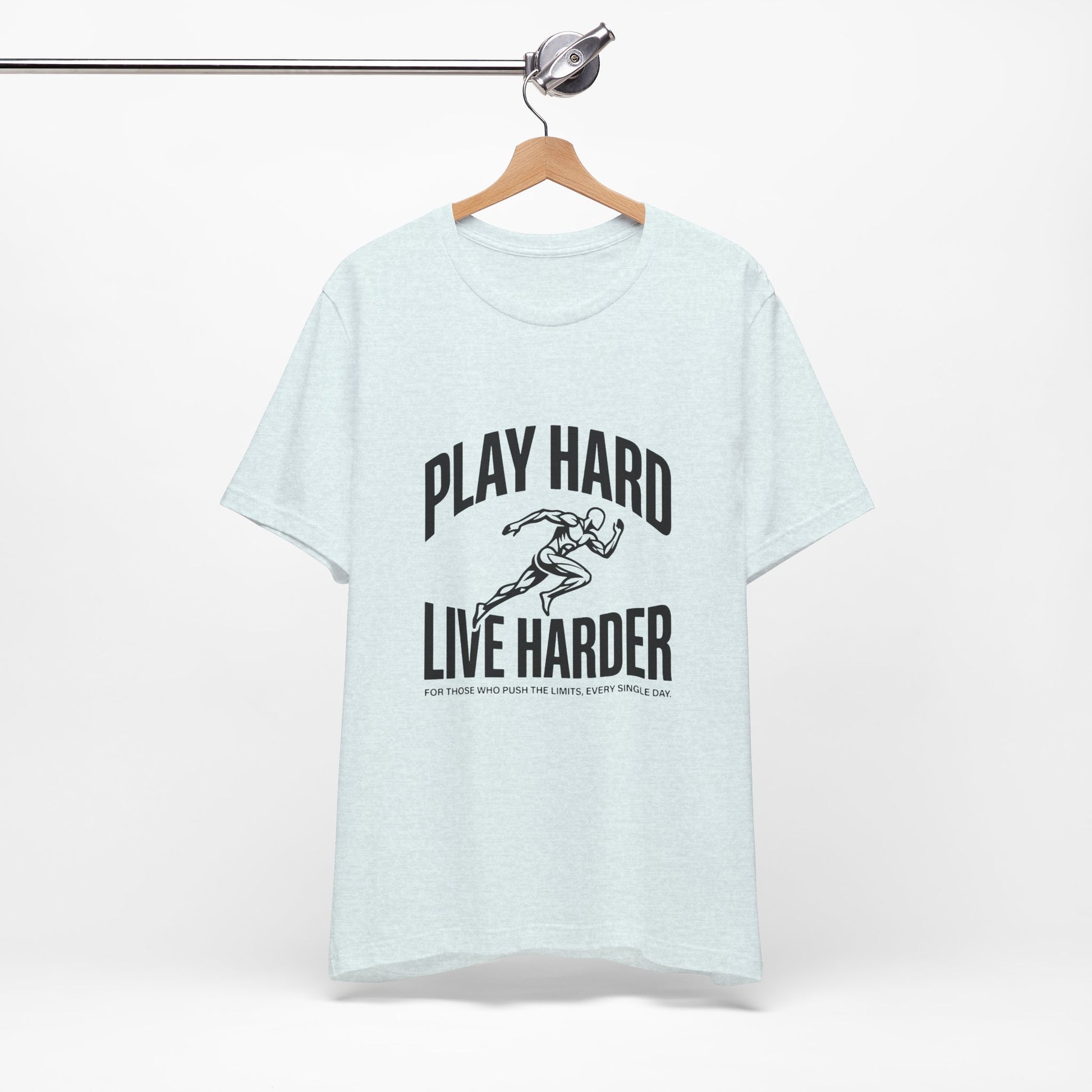 This lightweight Bella Canvas tee brings movement and attitude to everyday wear. The bold “Play Hard, Live Harder” art centers a vintage-style sprinter in motion — a quiet anthem for people who chase personal bests, early-morning runs, pickup games, and long weekends of deliberate living. The breathable Airlume combed ring-spun cotton drapes cleanly, while side seams and a ribbed knit collar keep the shape through repeat wears. Tear-away labeling and humane manufacturing give this shirt a thoughtful, wearable feel. Wear it to warm up, stretch out, or just meet friends for coffee after a sunrise run — it sits neatly under a hoodie or shows off on its own.