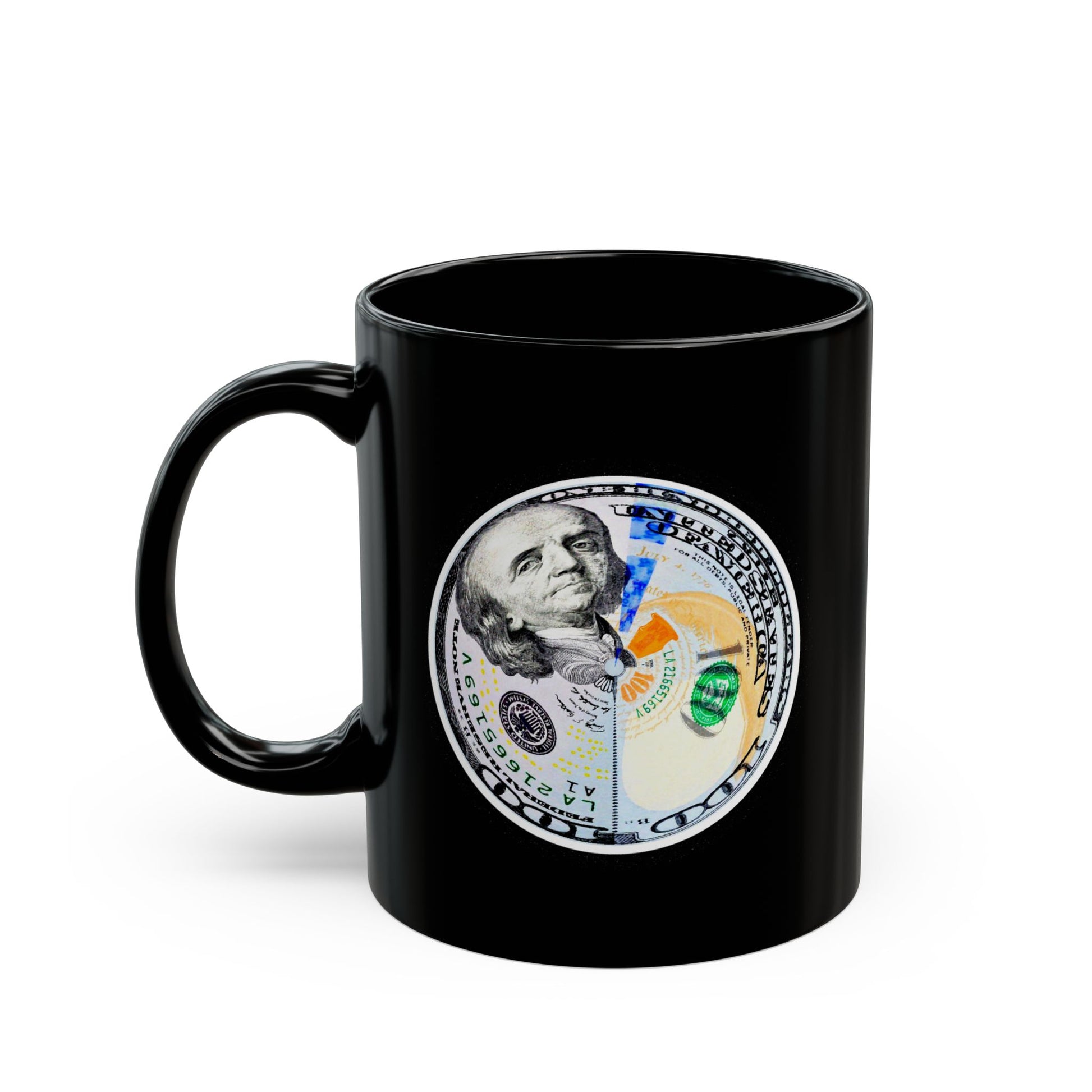 This glossy black ceramic mug brings a sharp, modern edge to morning routines. The rich black backdrop lets the circular, multi-toned graphic pop—a playful, slightly irreverent money motif that catches the eye without shouting. Hold it by the comfortable C-handle, sip something warm, and let the high-contrast design set a confident, slightly cheeky tone for your day. It warms up quickly in the microwave and cleans easily in the dishwasher, so it fits into busy mornings, late-night work sessions, and casual coffee chats alike.
