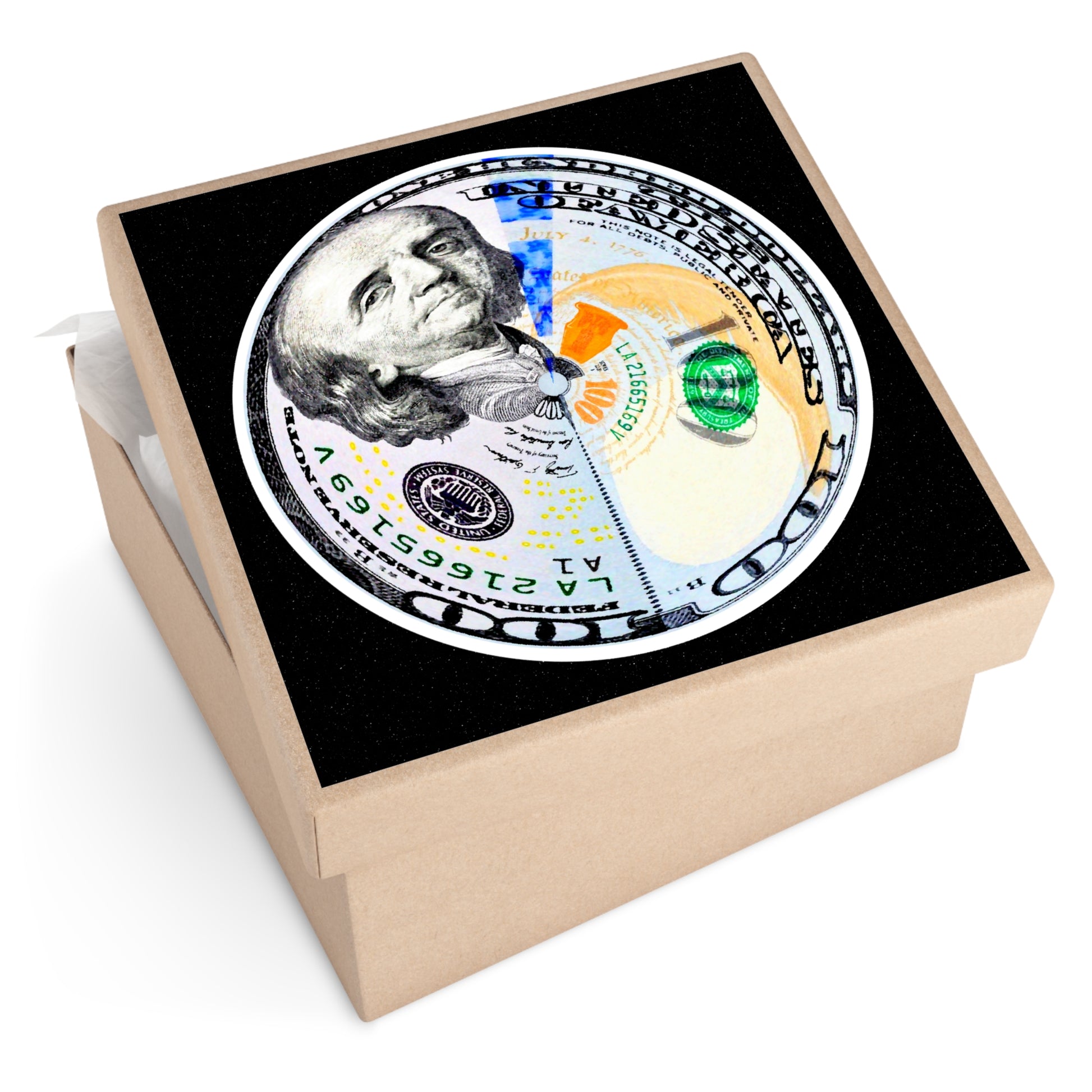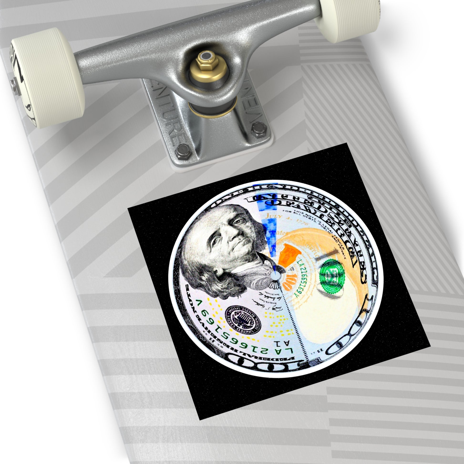 A bold, glossy vinyl sticker that turns a familiar symbol into playful art. This round sticker features a stylized one-hundred-dollar motif split into two contrasting halves, printed with vivid inks that hold their color whether you stick it on a laptop lid, a journal cover, or a window. The adhesive backs firmly to smooth surfaces, and the premium printable vinyl resists wear, so your design stays crisp through daily use and travel. It’s a small, confident accent that adds personality and a wink of irreverence to everyday gear.