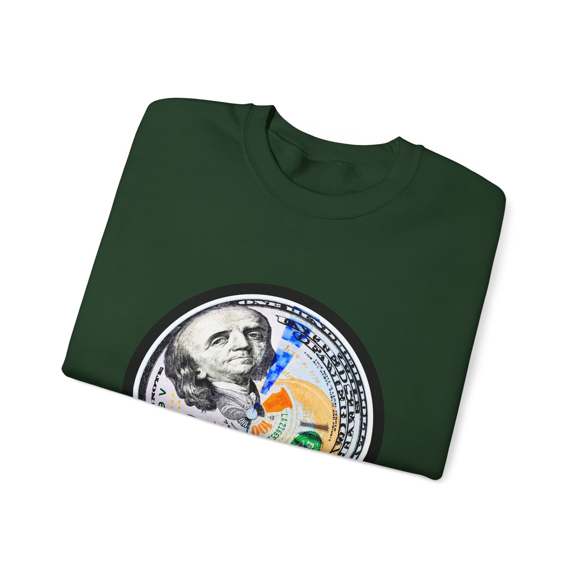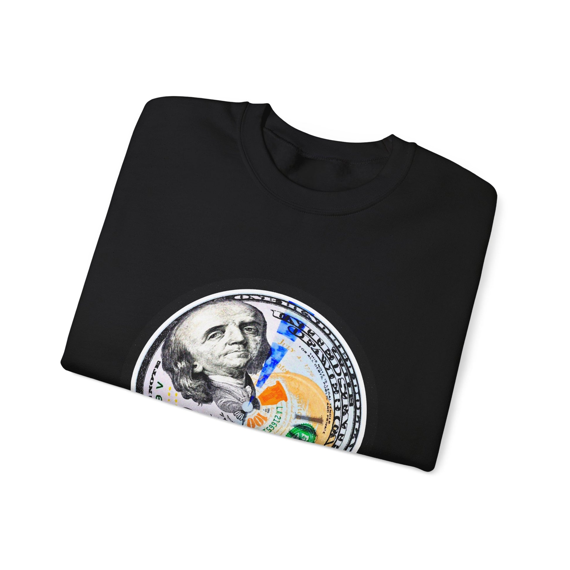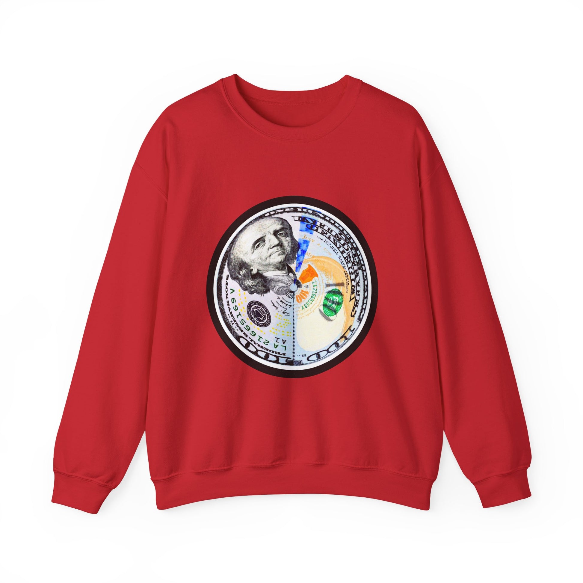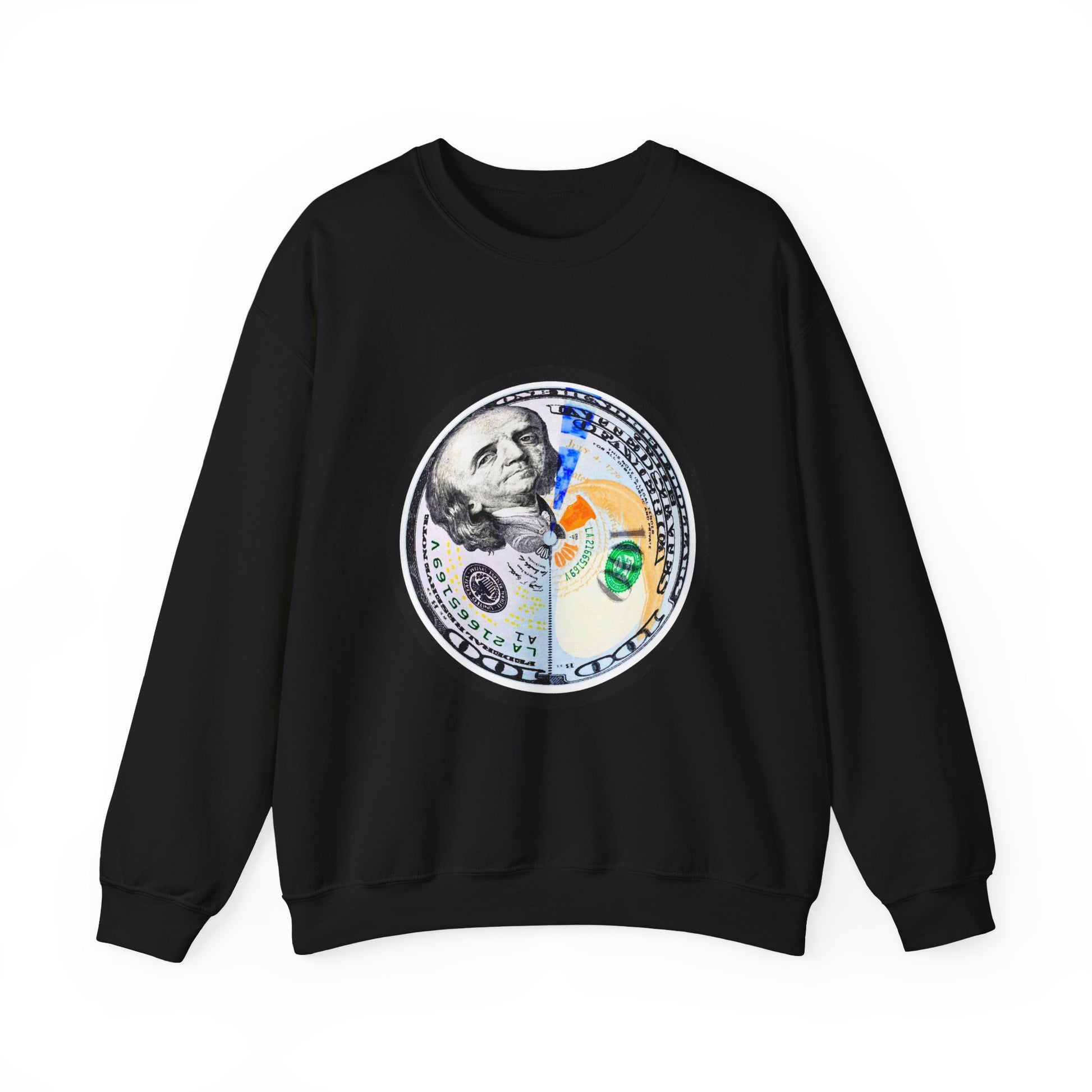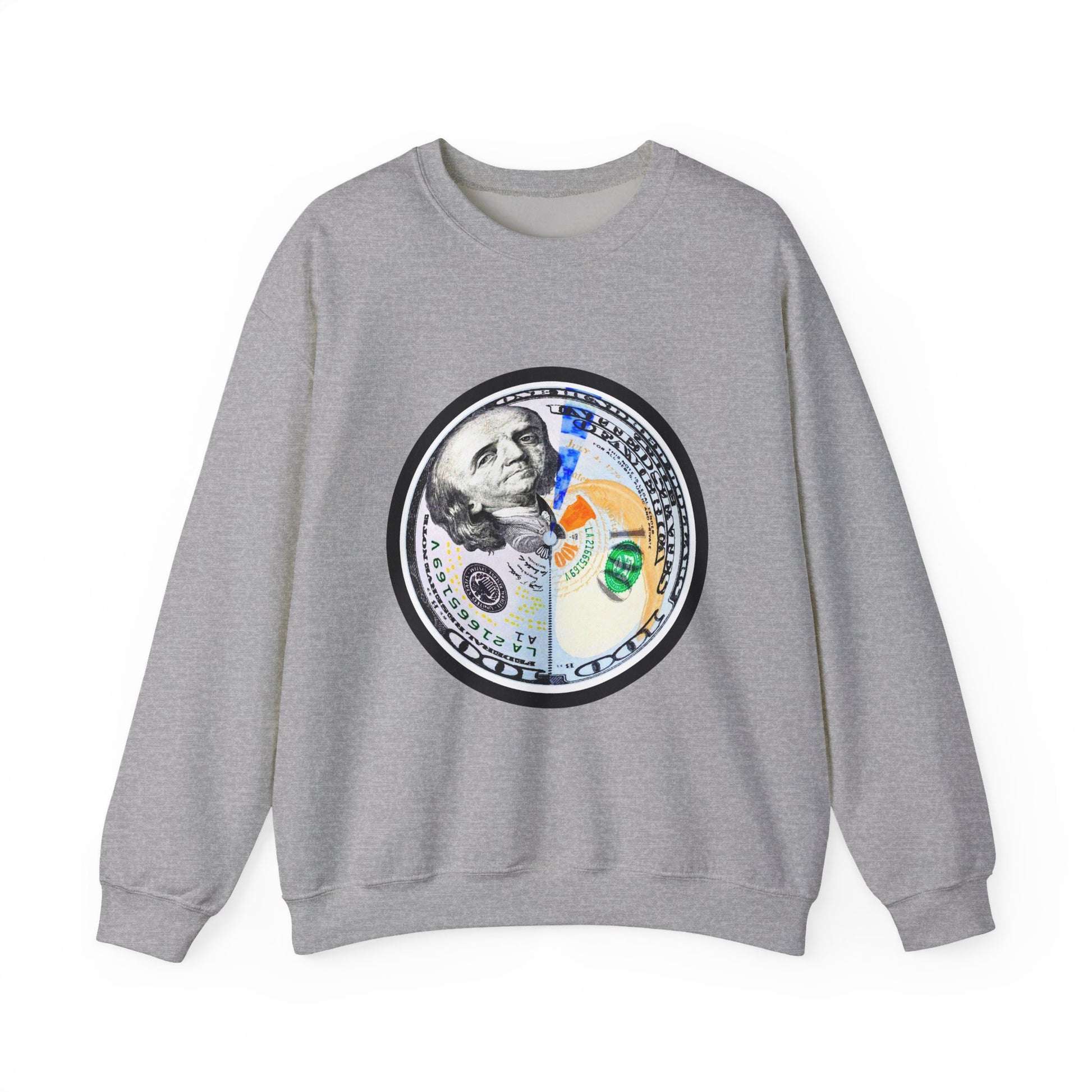 This cozy crewneck brings a playful edge to everyday wear. A clean white sweatshirt anchors a bold circular artwork at chest height—half vintage portrait, half colorful modern collage—that reads like a coin turned into pop art. The medium-heavy cotton-poly blend feels substantial without being stiff. Wide ribbed cuffs and waistband hold shape through repeated wears. Visible, durable stitching at stress points and a soft tear-away label keep comfort and longevity front and center. Wear it to brighten a slow morning coffee run, to layer under a jacket for a gallery night, or to lounge at home while sketching or listening to vinyl. The design speaks to those who love turning familiar imagery into something surprising and personal.
