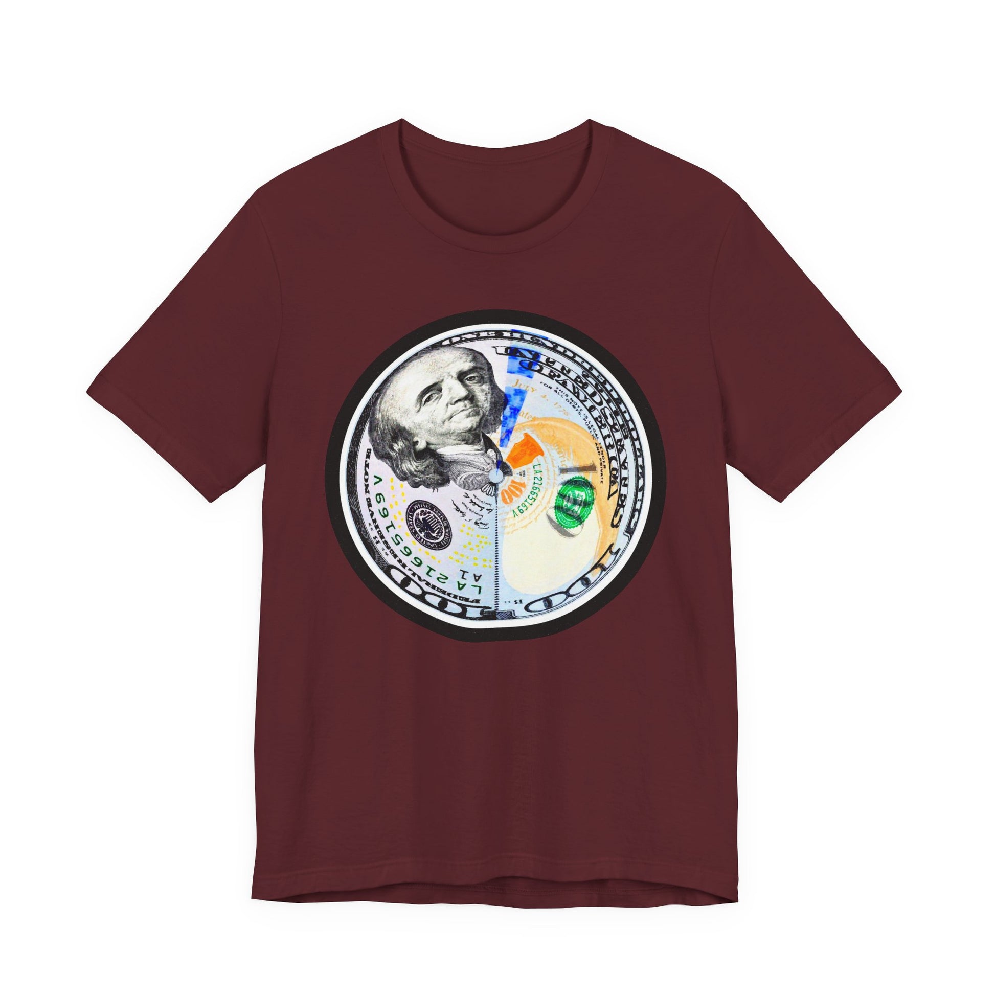 A clean, breathable jersey tee with a bold, contemporary coin graphic centered on the chest. The design splits the classic portrait-style imagery with modern color accents for a striking, metropolitan feel. Light and airy, this tee layers easily under jackets or stands alone with jeans for a relaxed, confident look. Finished details like a ribbed crew neck, shoulder tape, and side seams keep the silhouette neat and long-lasting, while the tear-away label and soft Airlume cotton prioritize comfort all day. REACH-certified and responsibly manufactured, it blends street-ready attitude with quiet quality.