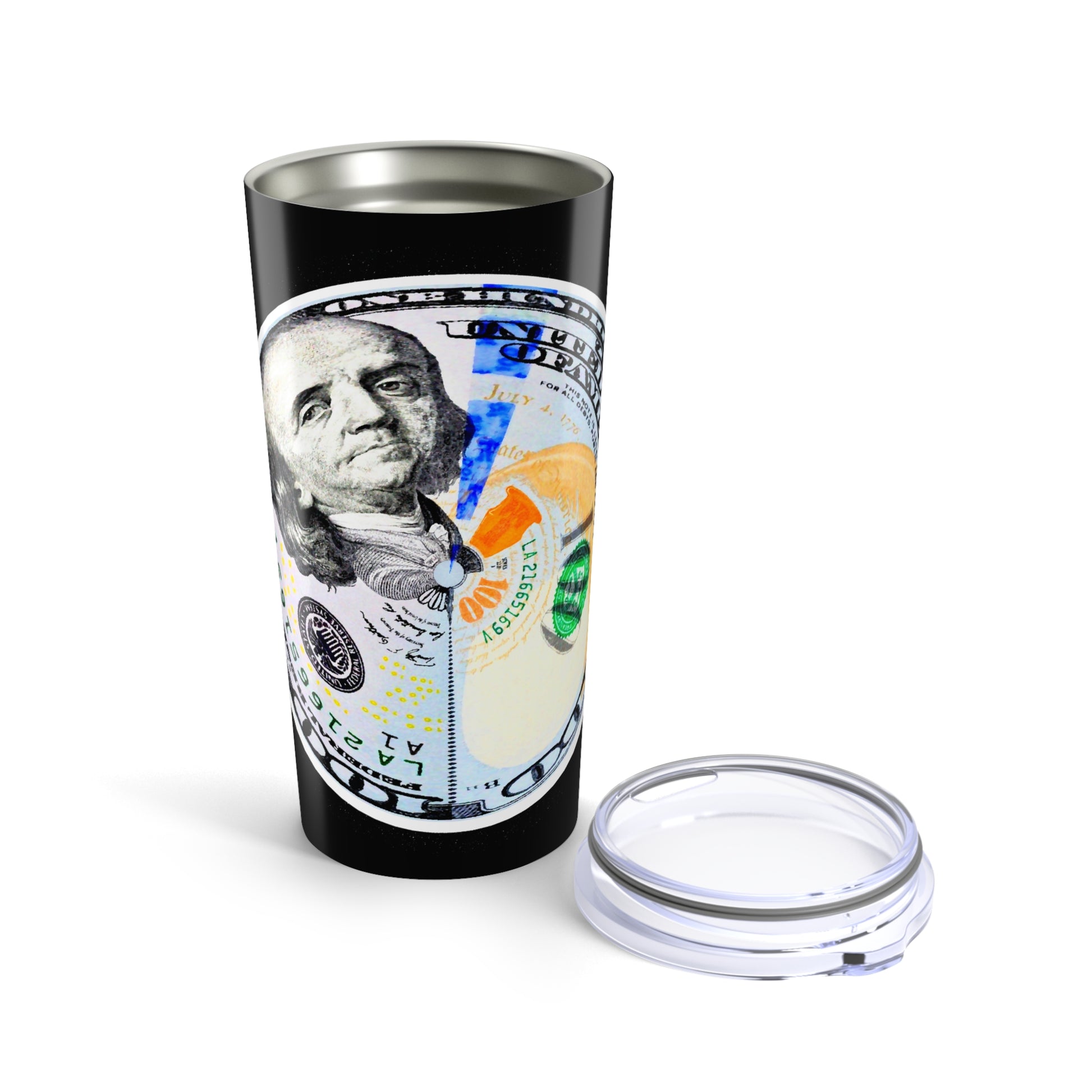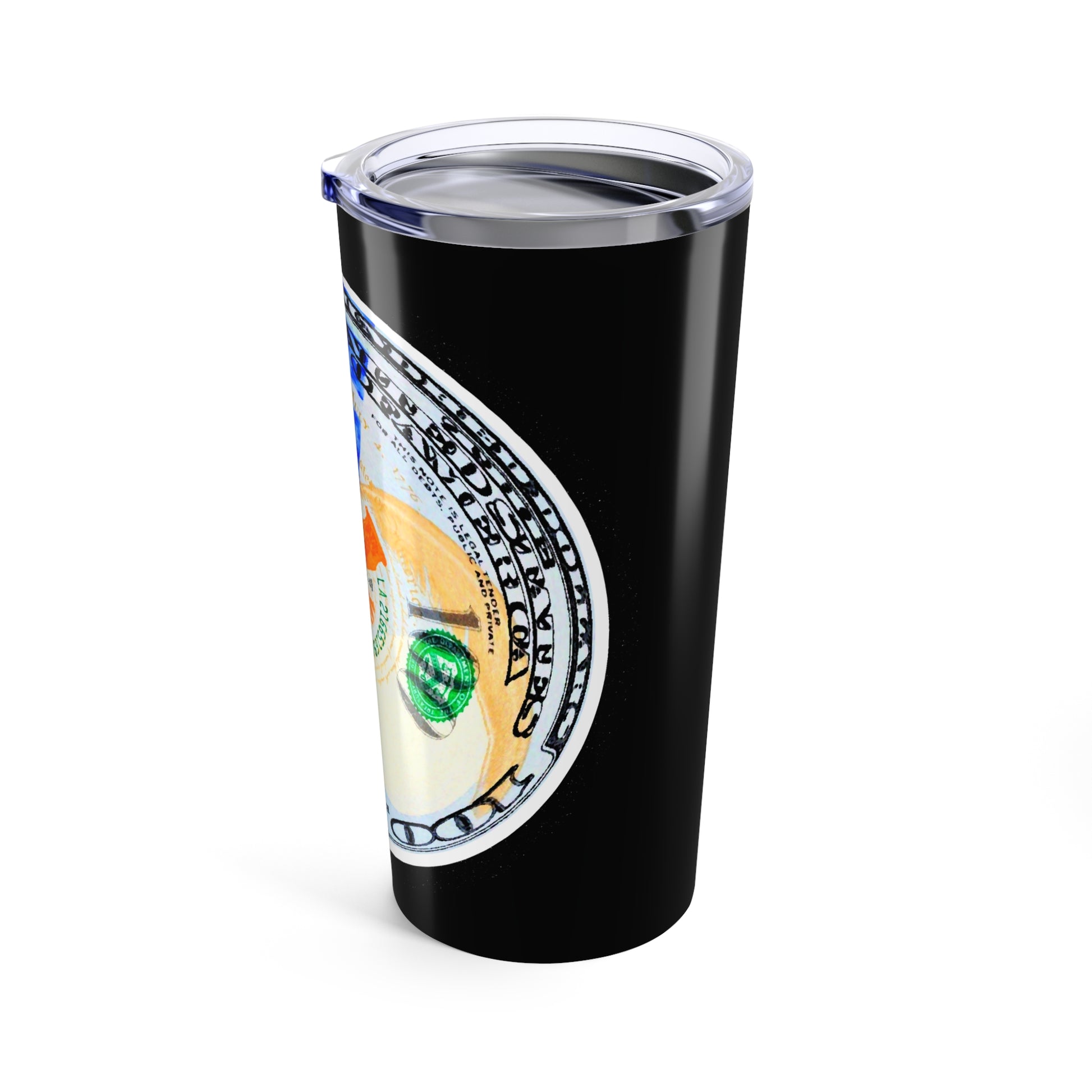 This 20 oz stainless steel tumbler brings a bold, playful energy to your daily routine. The glossy wraparound print features a close-up of currency—crisp details and vibrant accents catch the light against a deep black background. Double-wall vacuum insulation holds hot drinks steamy and cold drinks icy for hours, while the clear push-on lid with rubber gasket seals in temperature and reduces spills. Rounded corners and a smooth glossy finish lend a premium feel you’ll notice every time you reach for it. It slips into most cup holders and stands up to everyday life—dishwasher-safe for easy care and built to resist rust and staining.