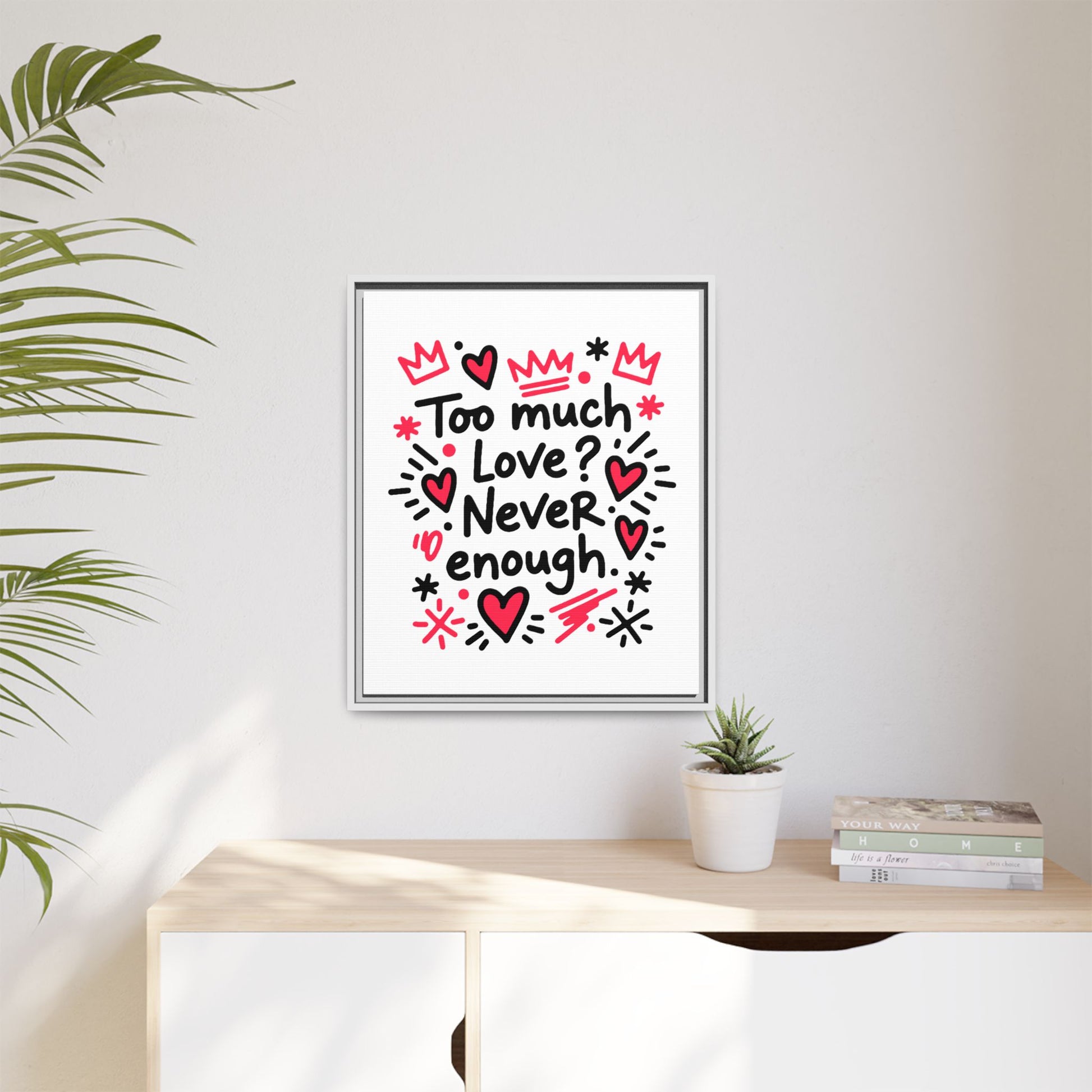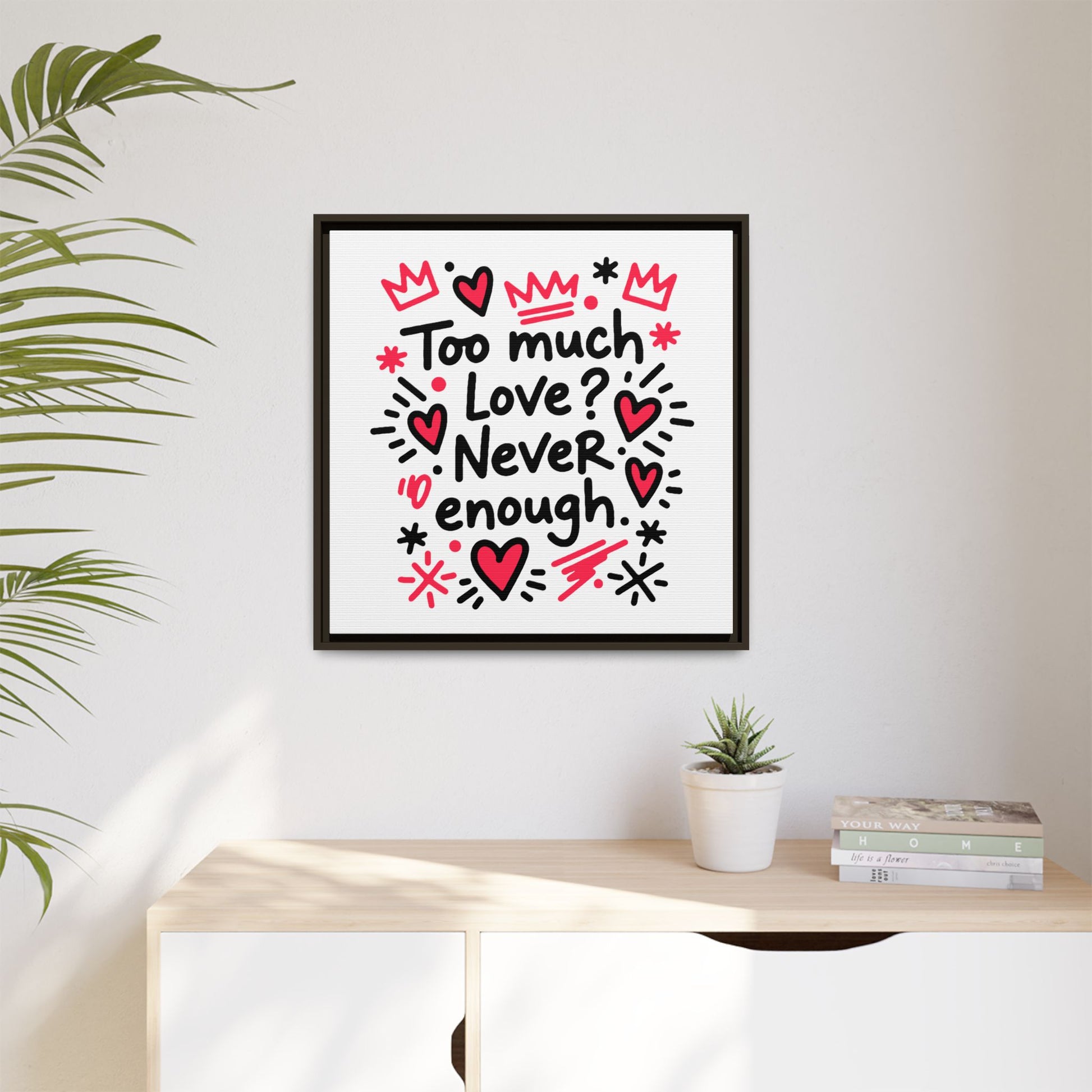 Bright, framed matte canvas that brings playful energy to any wall. The bold hand-lettered message sits on a clean white field, accented by lively pink crowns, hearts, and doodles. The low-gloss matte surface reduces glare and lets the colors read crisp and true, while the slender pine floater frame gives the piece a gallery-ready presence without overpowering the art. Hang it in a bedroom, studio, or hallway to add a pop of personality and a touch of cheeky optimism to the room.